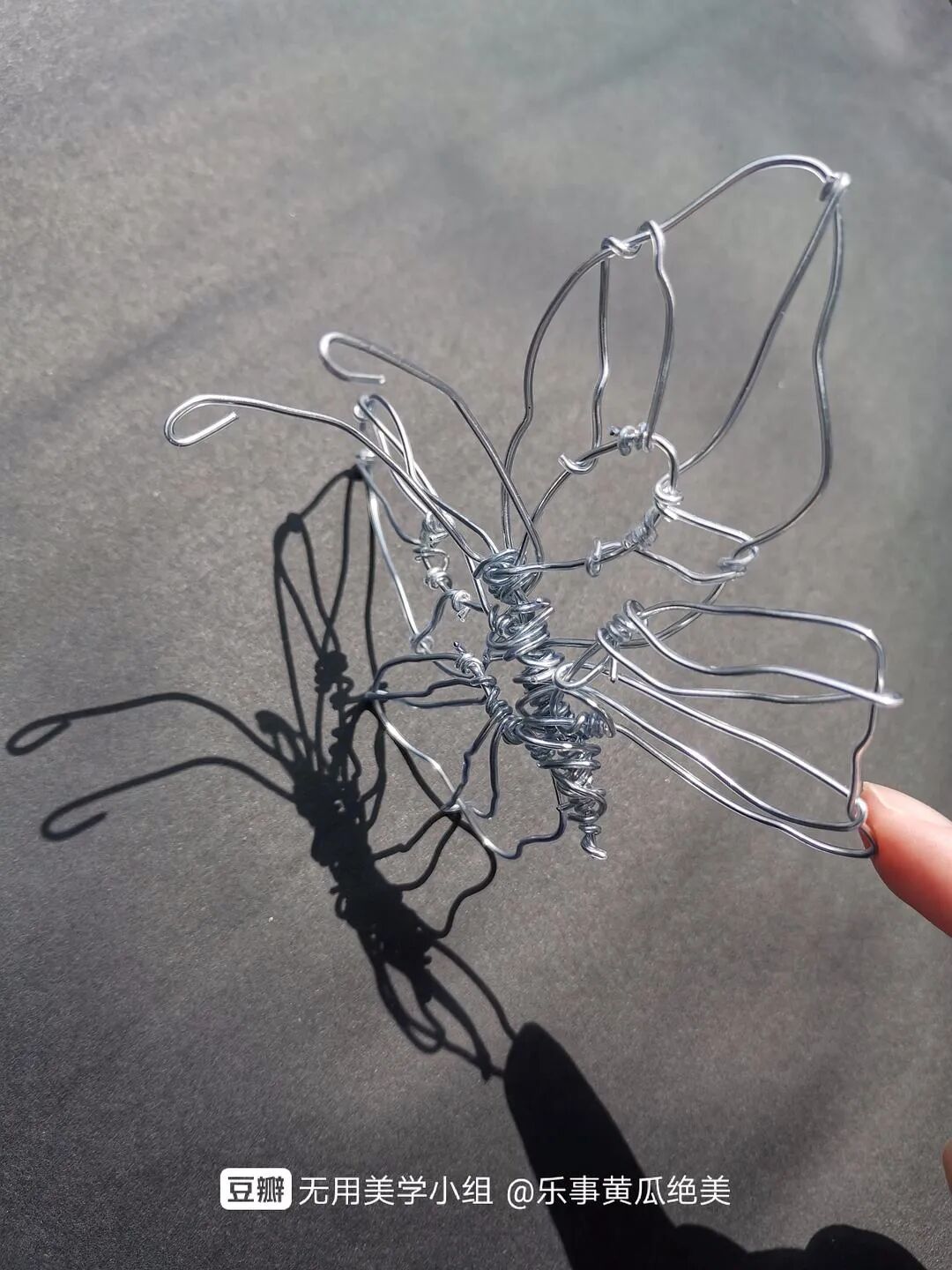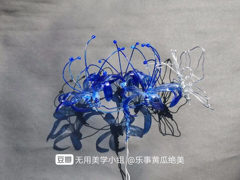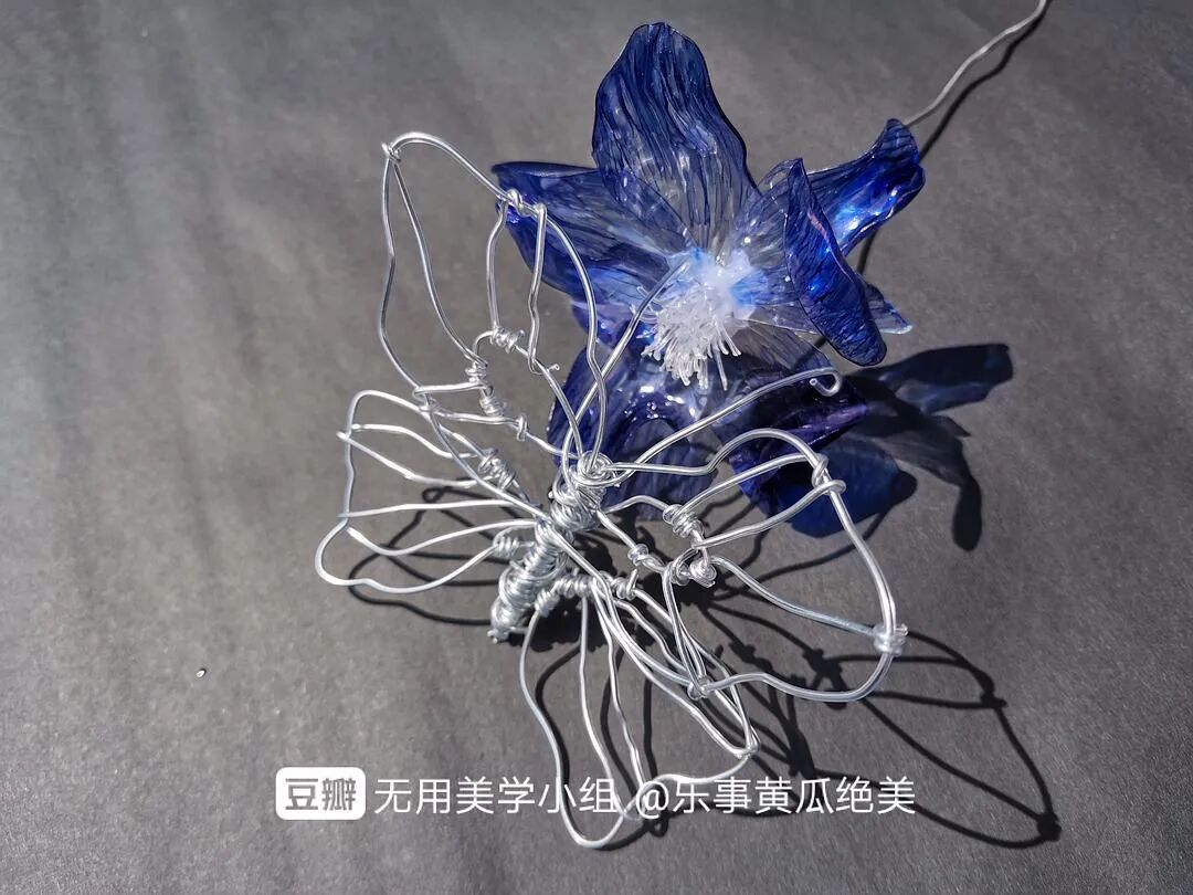 不存在的蝴蝶 用铁丝做了个小蝴蝶 蓝色的花花也是自己做的 来自豆瓣小组“无用美学”