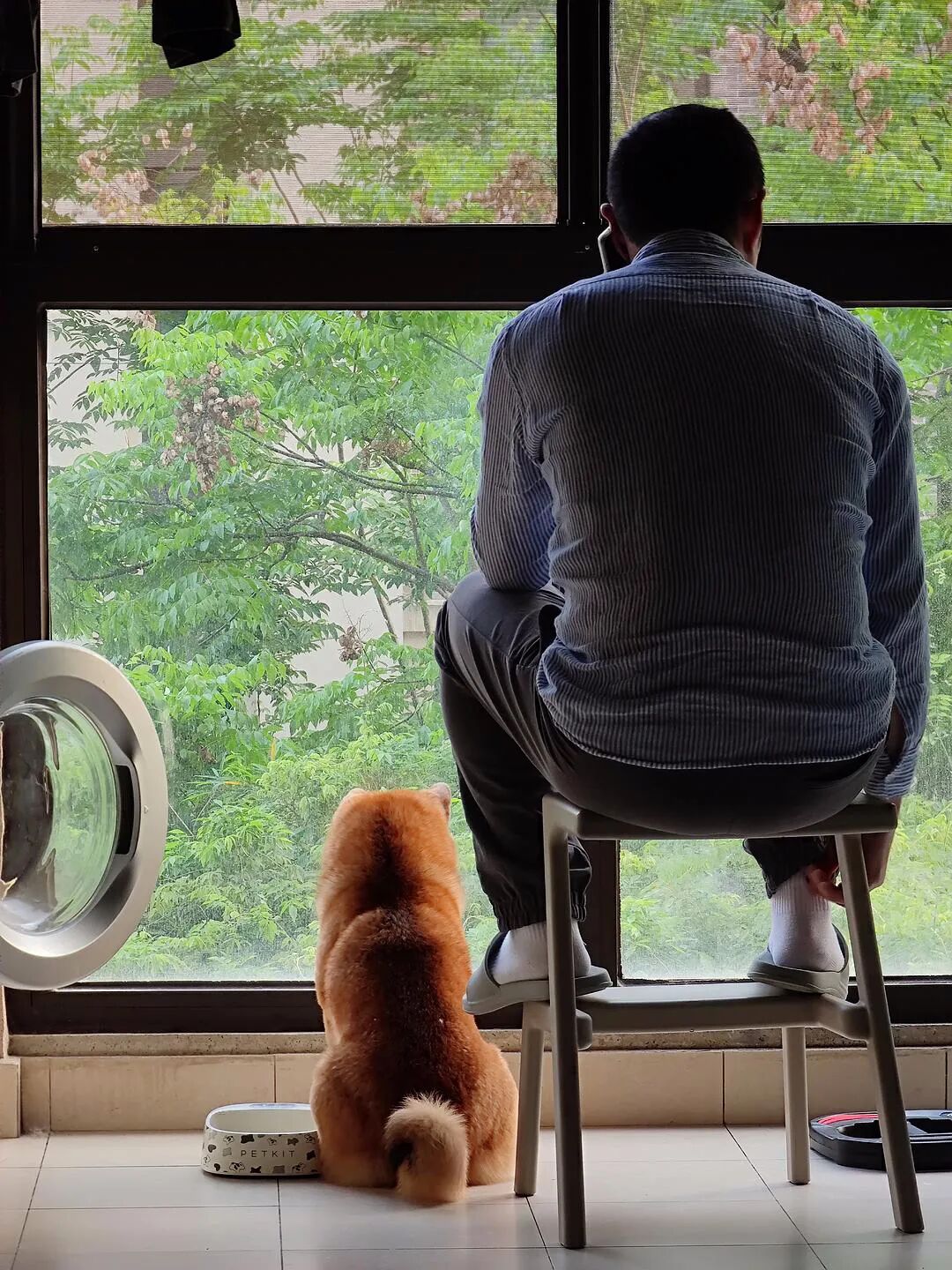 爸爸在电话,他在旁边。 来自豆瓣话题#我与宠物的相处之道#