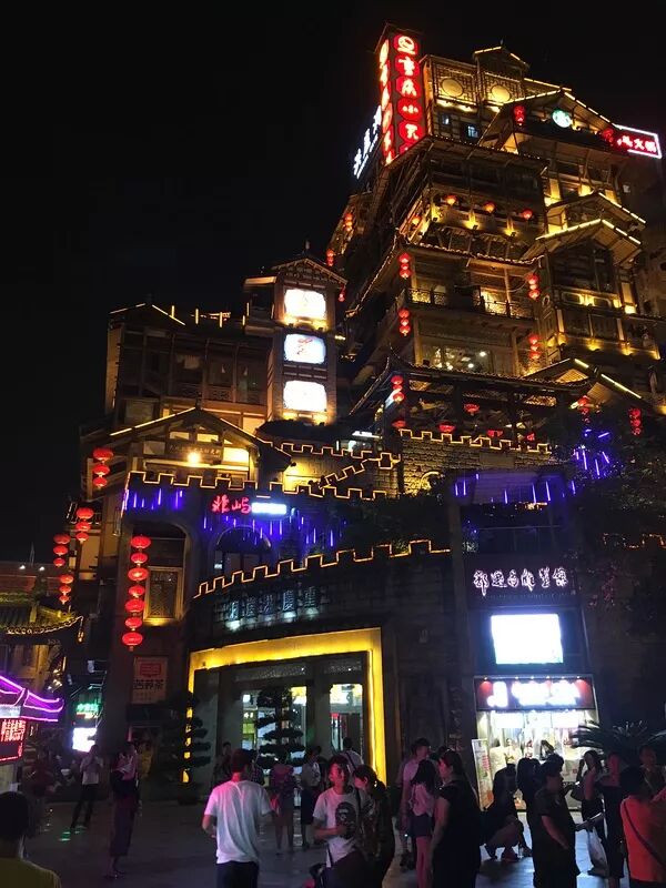 洪崖洞的夜景特别漂亮,不容错过。里边有许多酒吧,可以看着江边喝喝酒然后感慨一下。