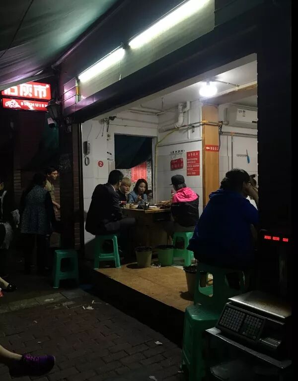 晚上我们8点半才到了吃串串的地方,地方很不好找,七拐八拐的一个小巷子里。虽然过去已经8点半了,但是我们还是排了将近半个小时的队。据朋友说她曾经12点过来还要排队。