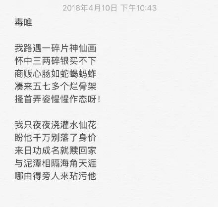 在此偶然看到饭圈一小姐姐写的《毒唯》打油诗一首,共赏。