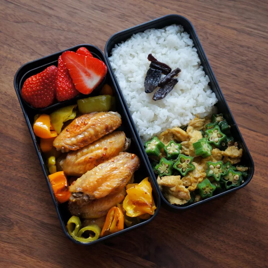 9. 蒜香烤翅+秋葵炒蛋+草莓