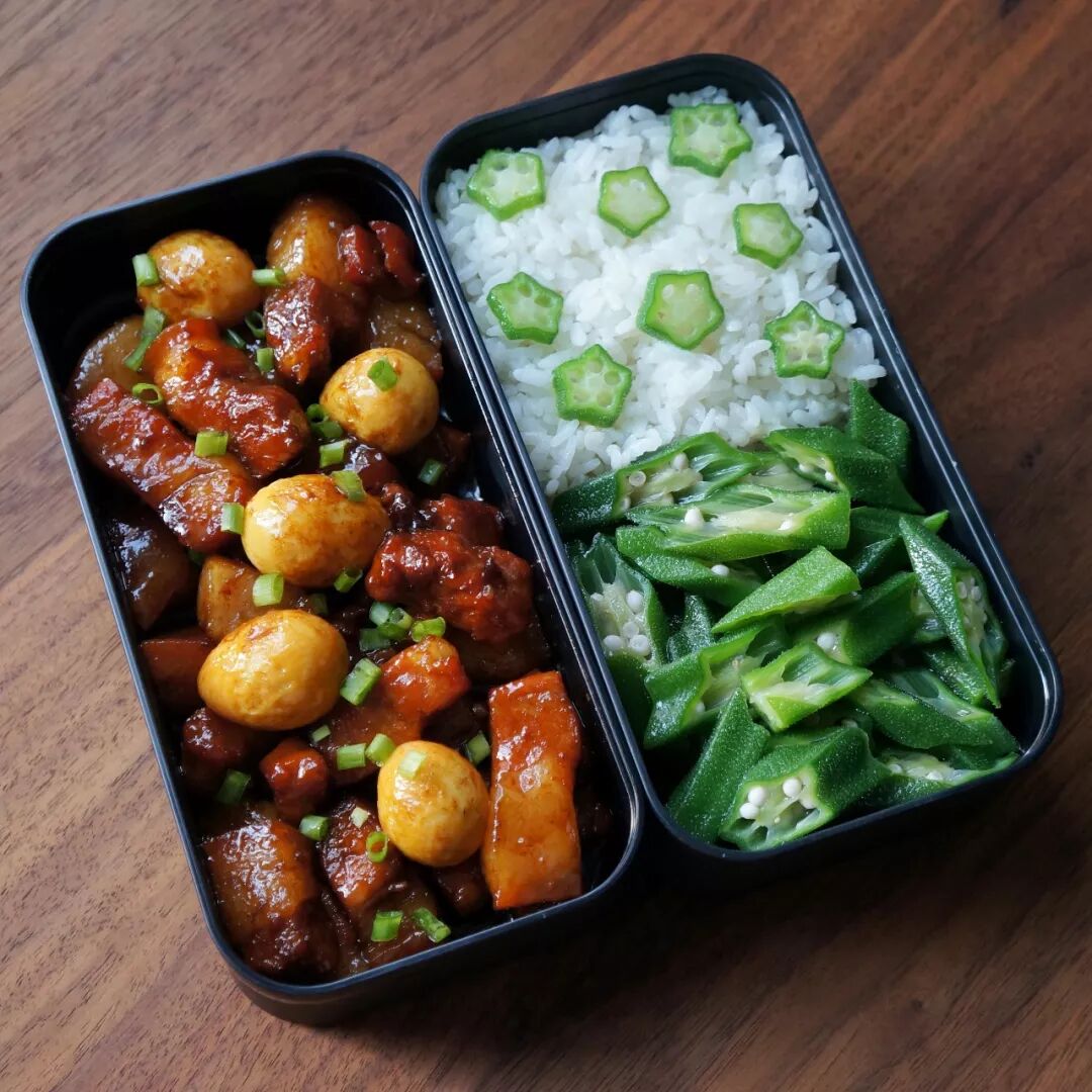 如果怕腻,可以搭配清爽一点的蔬菜,或者用凉拌的做法来处理。秋葵是大老师不太喜欢的蔬菜,搭配红烧肉,可以勉强吃一吃。