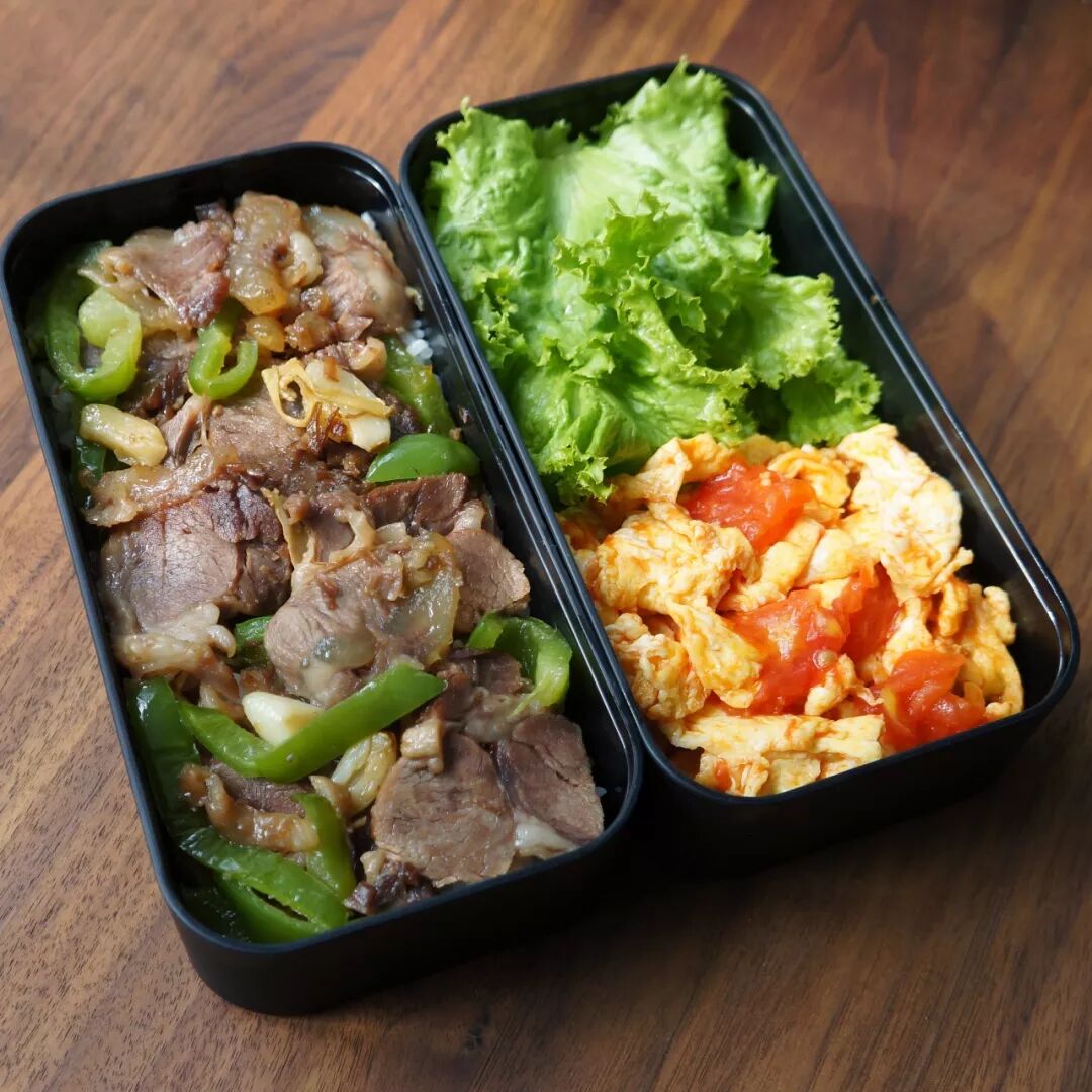 4. 青椒炒卤牛肉+番茄炒蛋+生菜