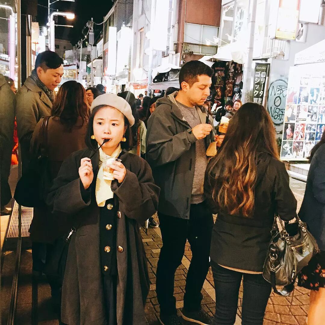 新宿网红冰激淋店门口互相喂食的情侣们▲
