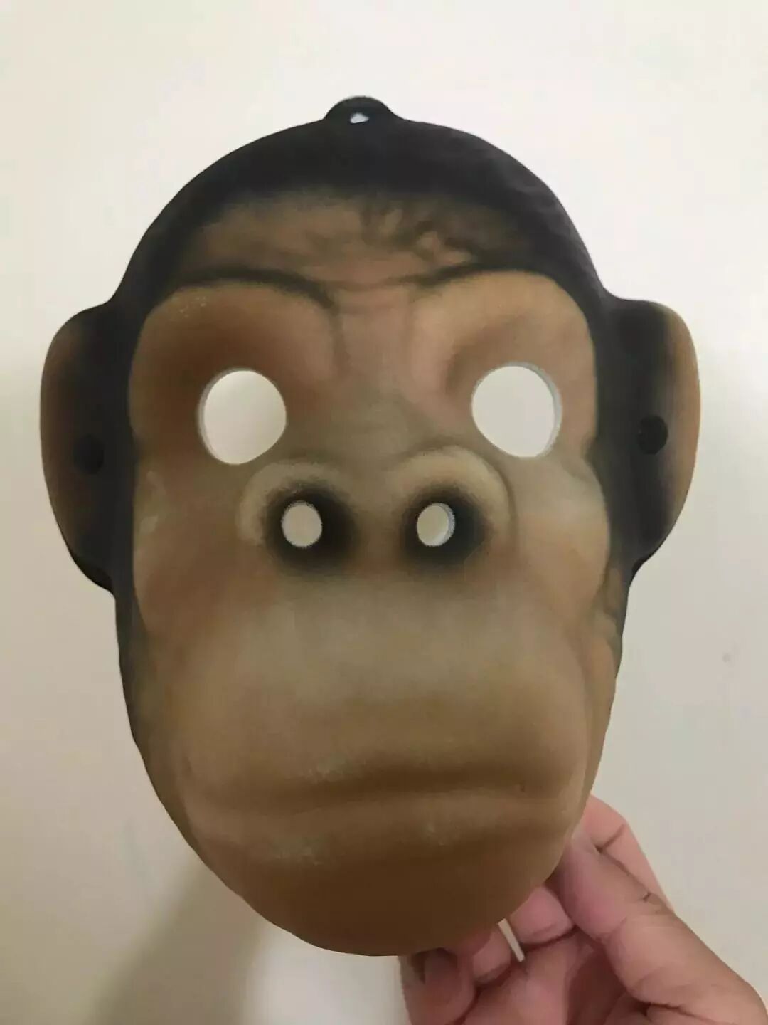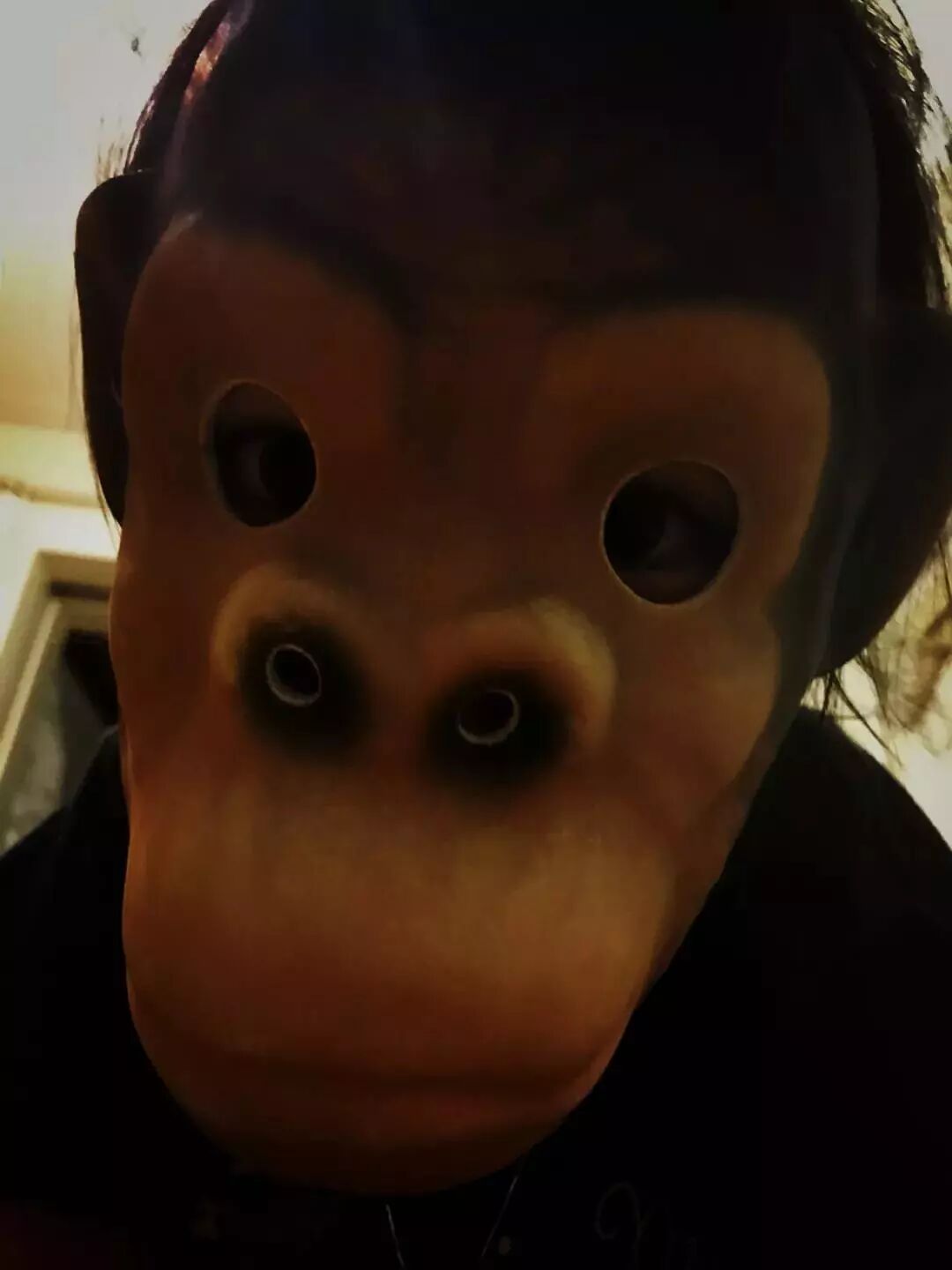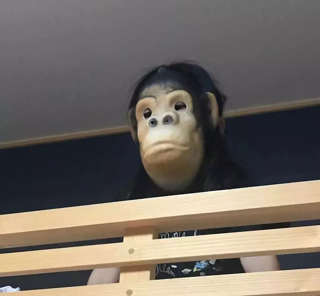 直到有一天去动物园有一猴儿笼,里面小猴儿十分可爱,我闺女惊喜地冲到近前去,里面几只互相打闹的猴儿突然全体石化,眼睛直勾勾盯着她,有一只从树杈子上折(音遮)了下来,还有一只的苹果从嘴里掉了出来也不敢捡。我闺女张开双臂做拥抱状表达爱意,群猴儿屁滚尿流四散而逃。她眼泪汪汪转身问我原因,我说:“你戴着这个面具冲谁张手谁都要尿裤子的。”这才劝得她摘下来,热乎劲算过去了。