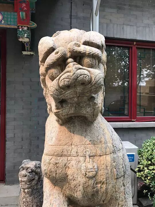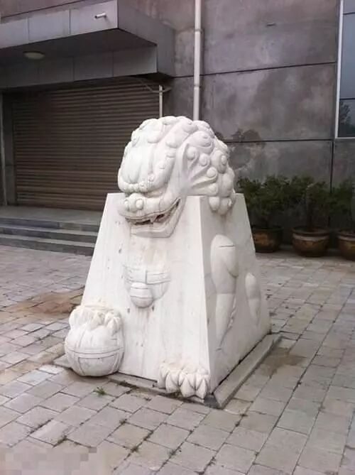 很多建筑门口都会放上一对石狮子,它们各有各的表情,也各有各的表情包......