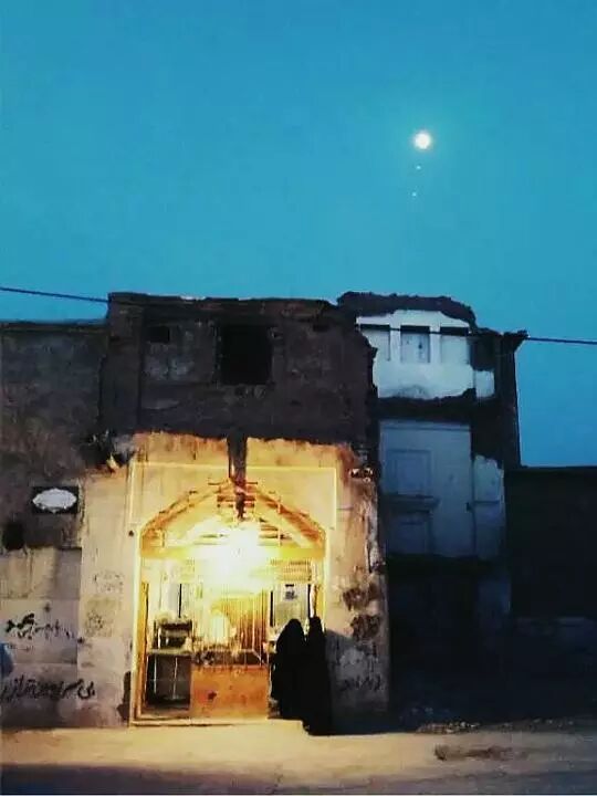 N年前去伊朗,路过一条很破烂的巷子,暖暖的灯香香的饼,天上的月亮刚起