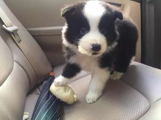 和狗狗第一次见面,45天大,吃完了一整只肉包。