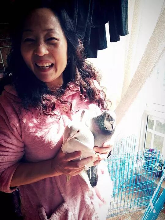 把送来吃的鸽子放生,我妈抱着鸽子说它俩还热乎乎的呢,太阳很好,狗也很乖。#好时光#