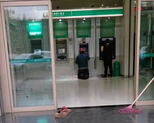 其实,这张才是最舍不得删掉的吧。大二,我胃疼,逃课出去买雷尼替丁。那天下着雨,路上挺泥,路过农行,看到这一幕,就顺手拍下来了。想着发到微博上,然后这张照片就火了一两天吧。可惜了,手机坏了,刷机以后什么都没了
