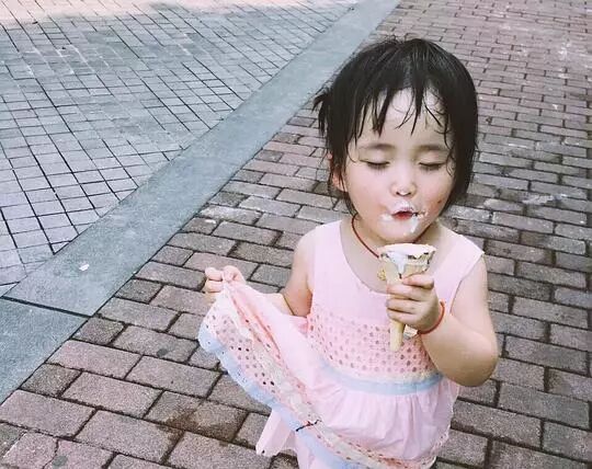 小时候的表妹 吃到冰淇淋开心到闭眼牵裙角