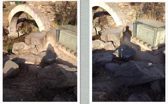 几年前异地恋,我去看他。有天他要上班,我就一个人去了圆明园,随手拍了左边这张,发给他看。我走后,过了十来天,他顺着我那张照片找过去,坐在我坐过的石头上,拍下我拍过的风景。天涯共此时,大概就是这样吧。