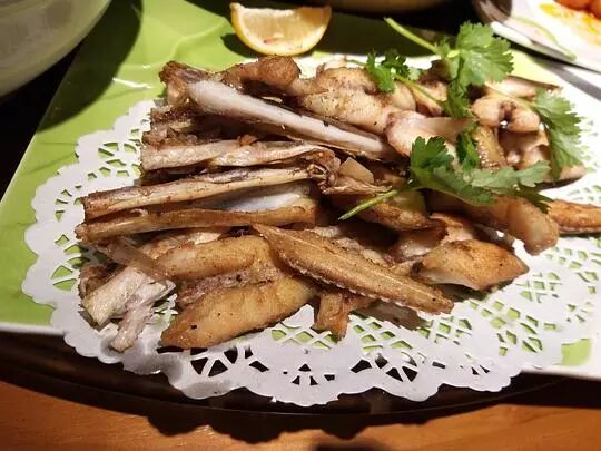 前几天出去吃饭,看到两条奇怪的鱼,身子很长(约莫半米),嘴巴很长,还有一条细长的尾巴。点菜的人说这叫“鸭嘴鱼”,她们餐馆也是头一次进到这种鱼,只剩这两条了,干煎很好吃。我就点了这两条鱼干煎,的确很好吃。真是与动物的一次奇妙相遇啊!