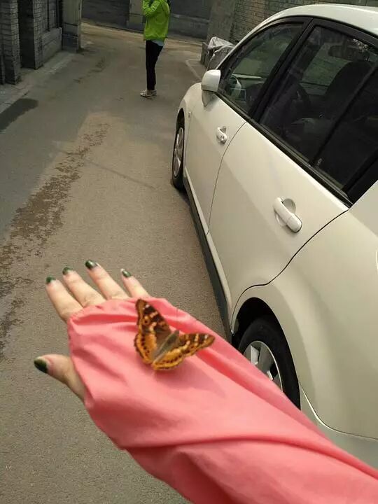 后一张是在家里,感觉深受蝴蝶喜爱啊,在胡同里遛弯也有蝴蝶飞来手上陪着。