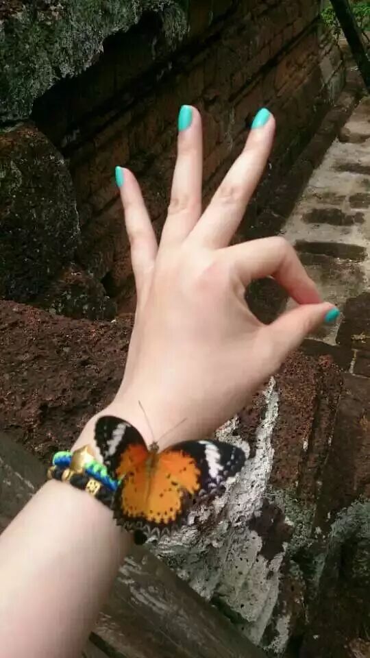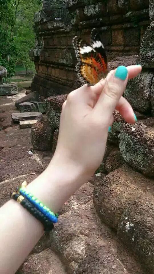 前两张是柬埔寨女王宫拍的。酷热的天气,高高的台阶,浓厚的历史沧桑感的建筑。累到几乎手脚并用的延石阶往上爬,飞来一只蝴蝶,一直在手上停留不走,我顿时精神为之大震,高举着这只手臂往上继续走,像女祭司要去举行仪式一样。周边的老外都在围观哈哈哈哈哈。