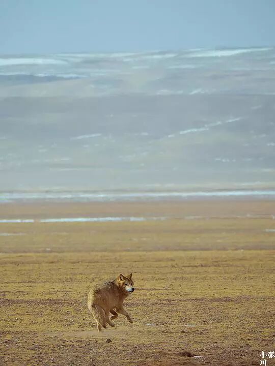 两头狼,其中一头是跛的。在看到我们以后跛的那只不慌不忙向远方踱步而去,而另一头竟然朝我们慢悠悠走了过来。在距离只有几米的地方停下来俯身打滚卖萌,亮出脖子及胸腹部表示顺从,看起来毫无恶意。跟我们玩了一会突然一跃而起向远方跑去,那头跛狼已经完全看不见踪影......