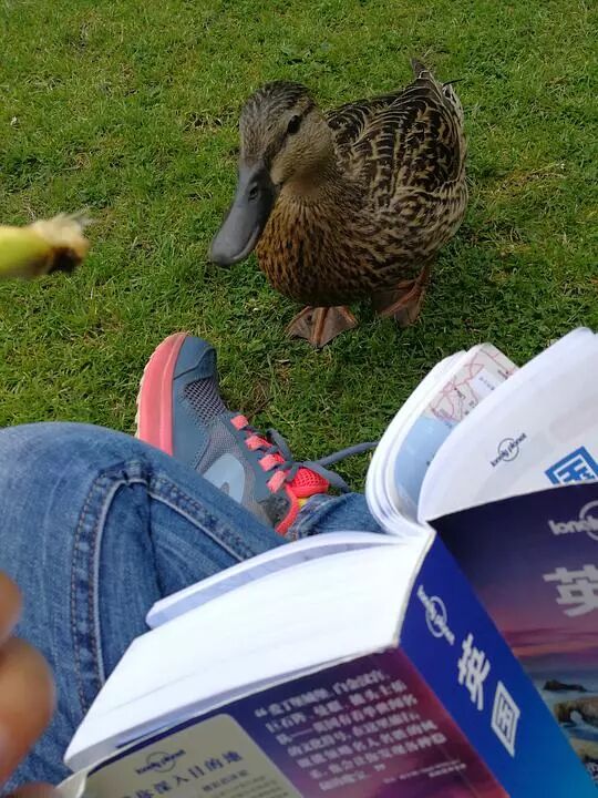 在约克公园里遇见一只鸭子,就这么走到我身边,可能被我的香蕉吸引了。
