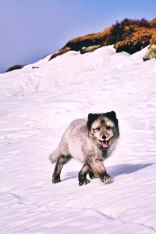 爬山冻得半死的时候,它像一个小小惊喜一样出现了。还裹着绒毛,明显是只幼崽狐狸。看到我们掏包包,它觉得可能有吃的,特别馋想过来,但自己形单影只又不敢贸然靠近,就出现了如此纠结的步伐……🦊