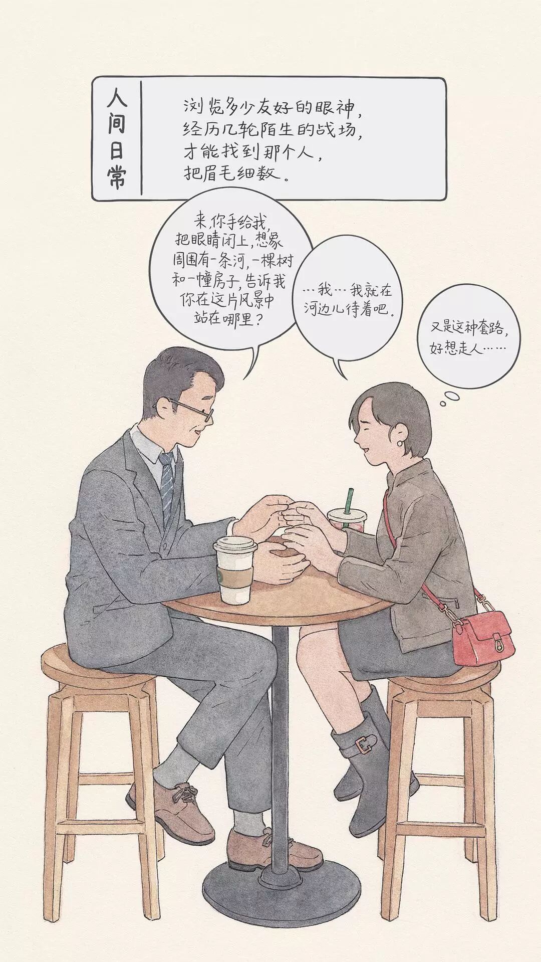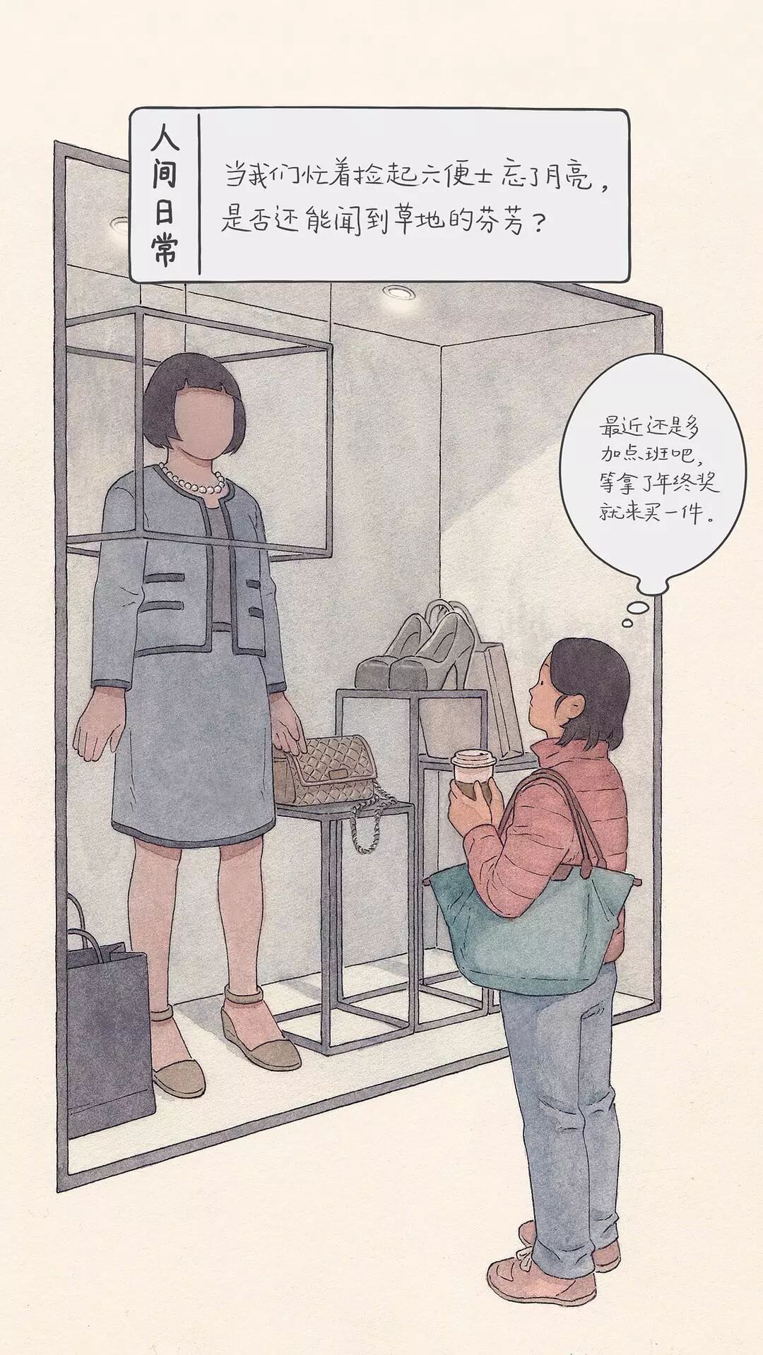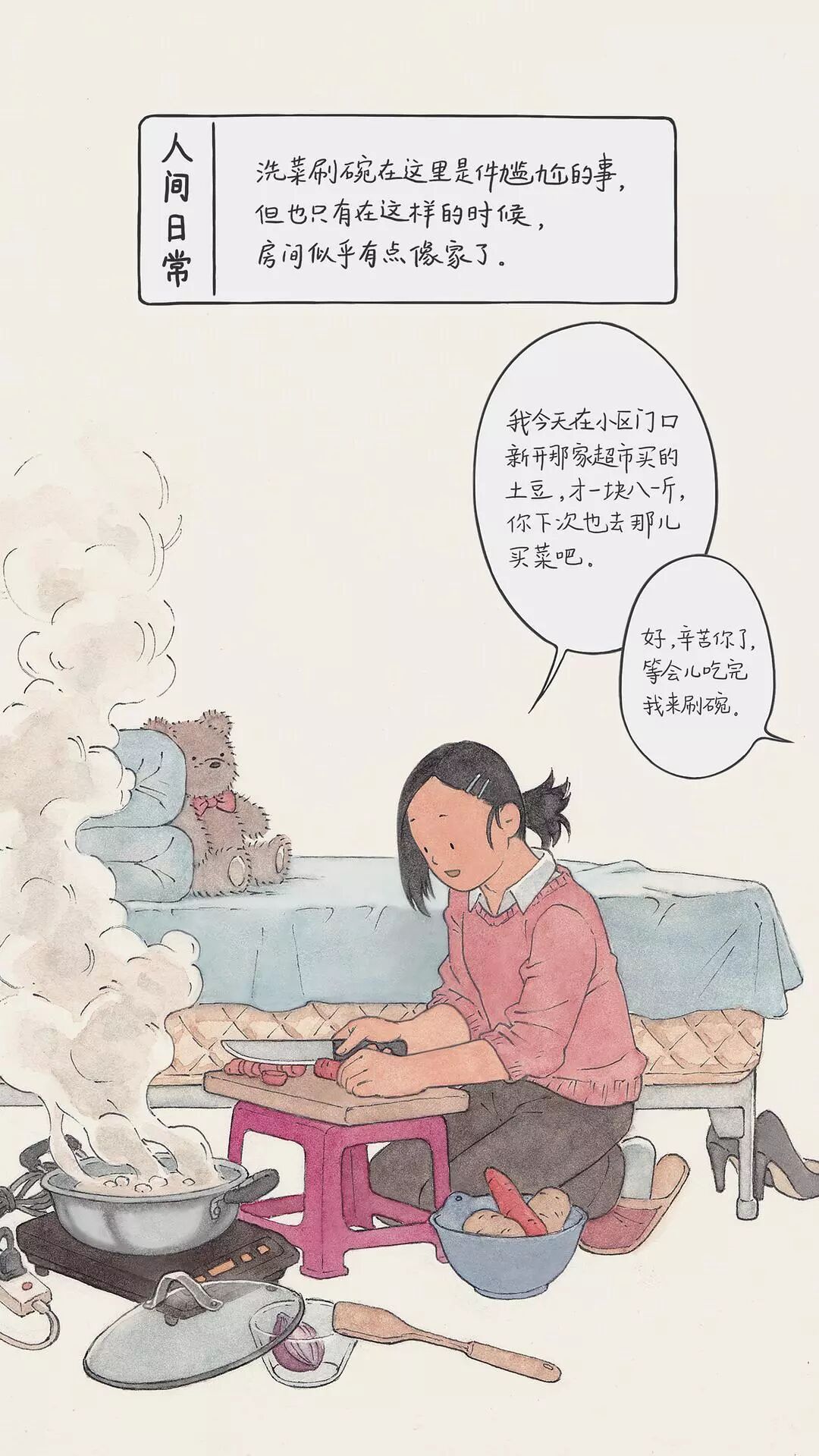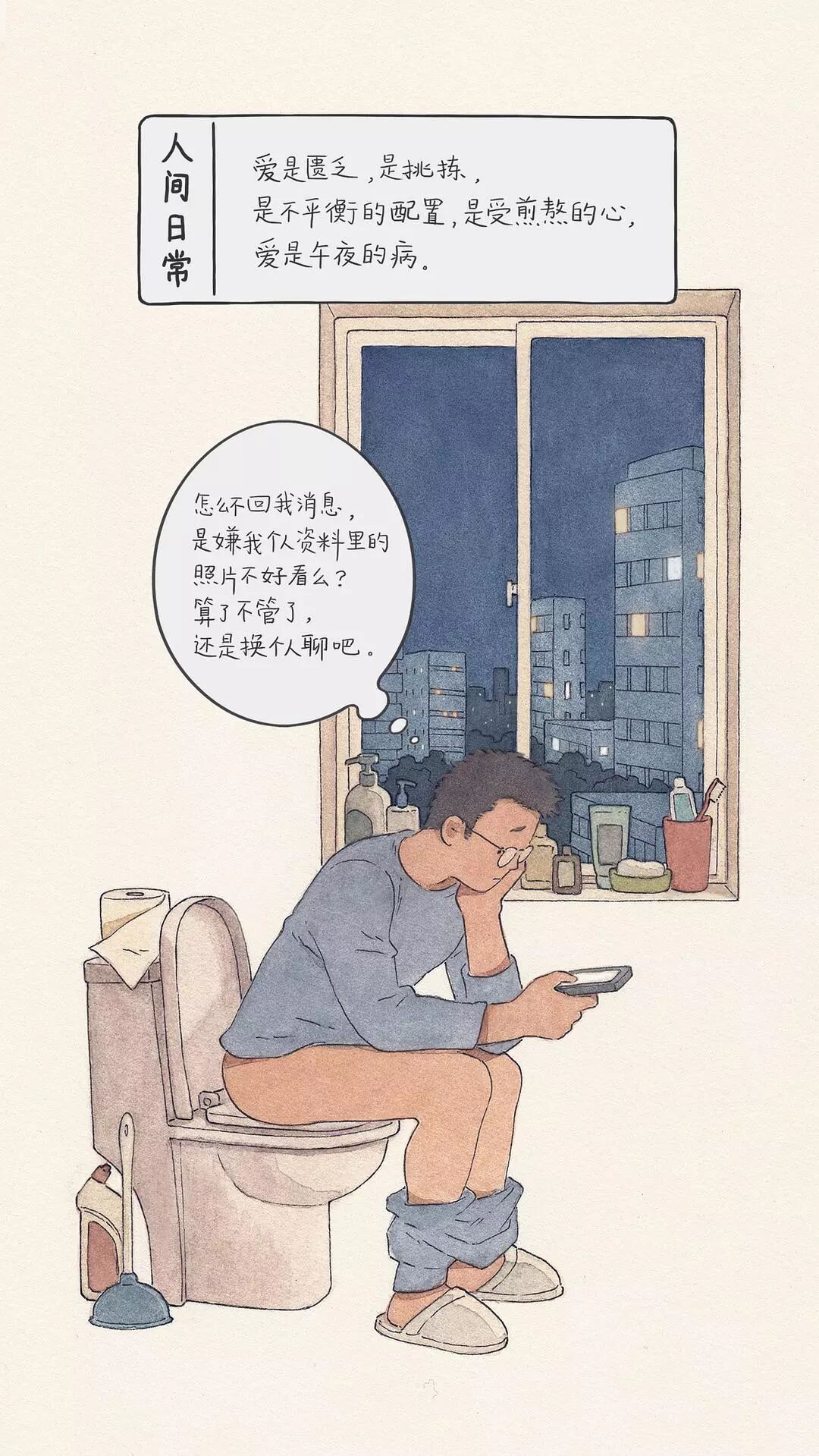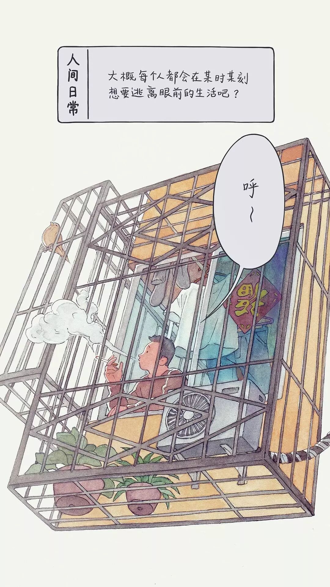 从此,这位插画师开始用画笔描绘出生活中的一幕幕,汇成豆瓣相册《人间日常》。