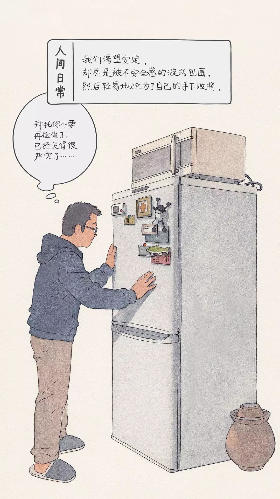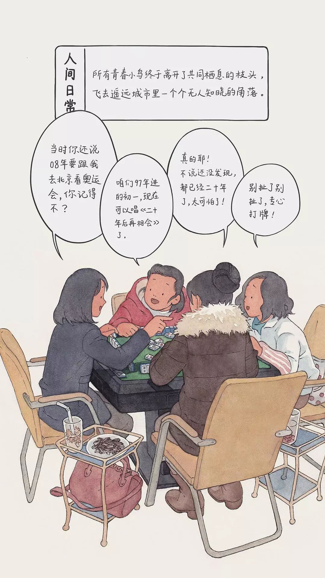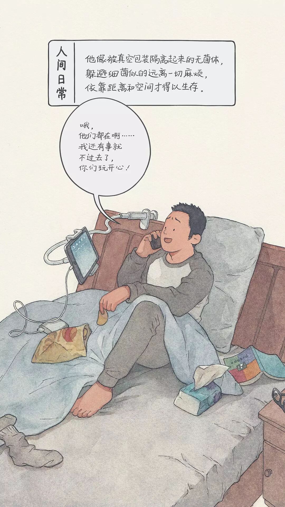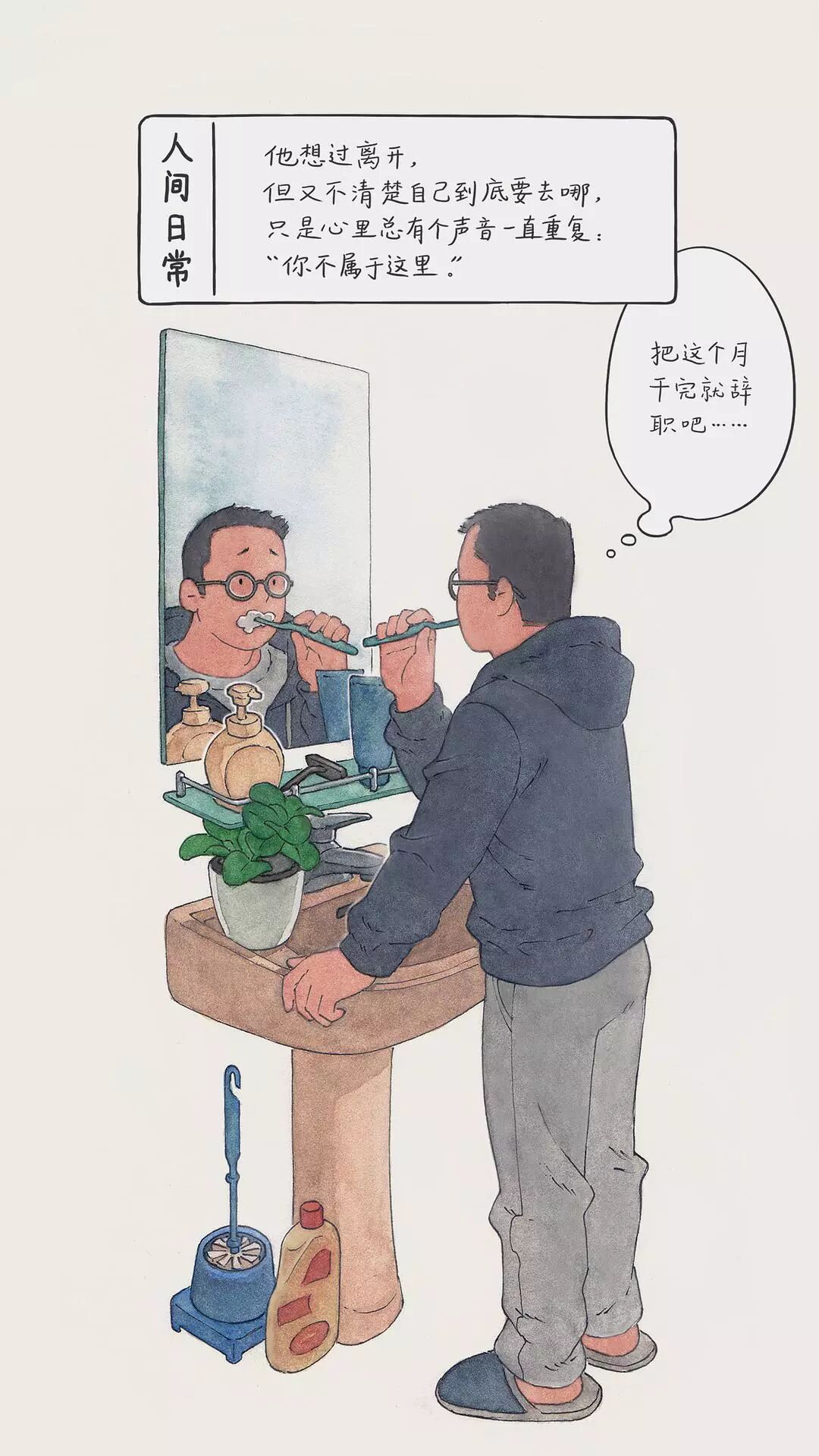 从此,这位插画师开始用画笔描绘出生活中的一幕幕,汇成豆瓣相册《人间日常》。