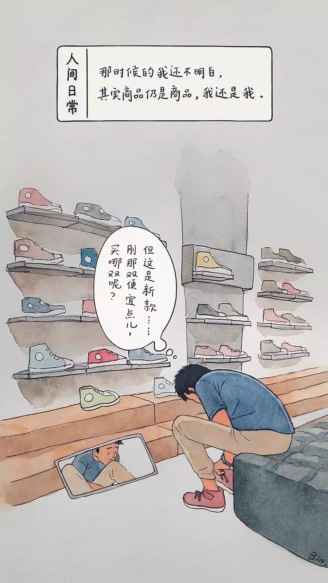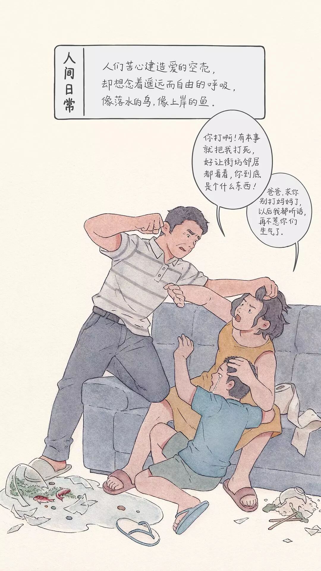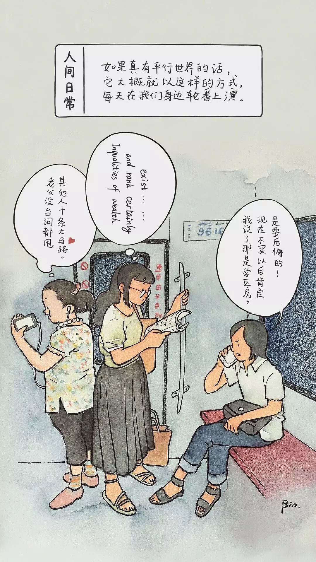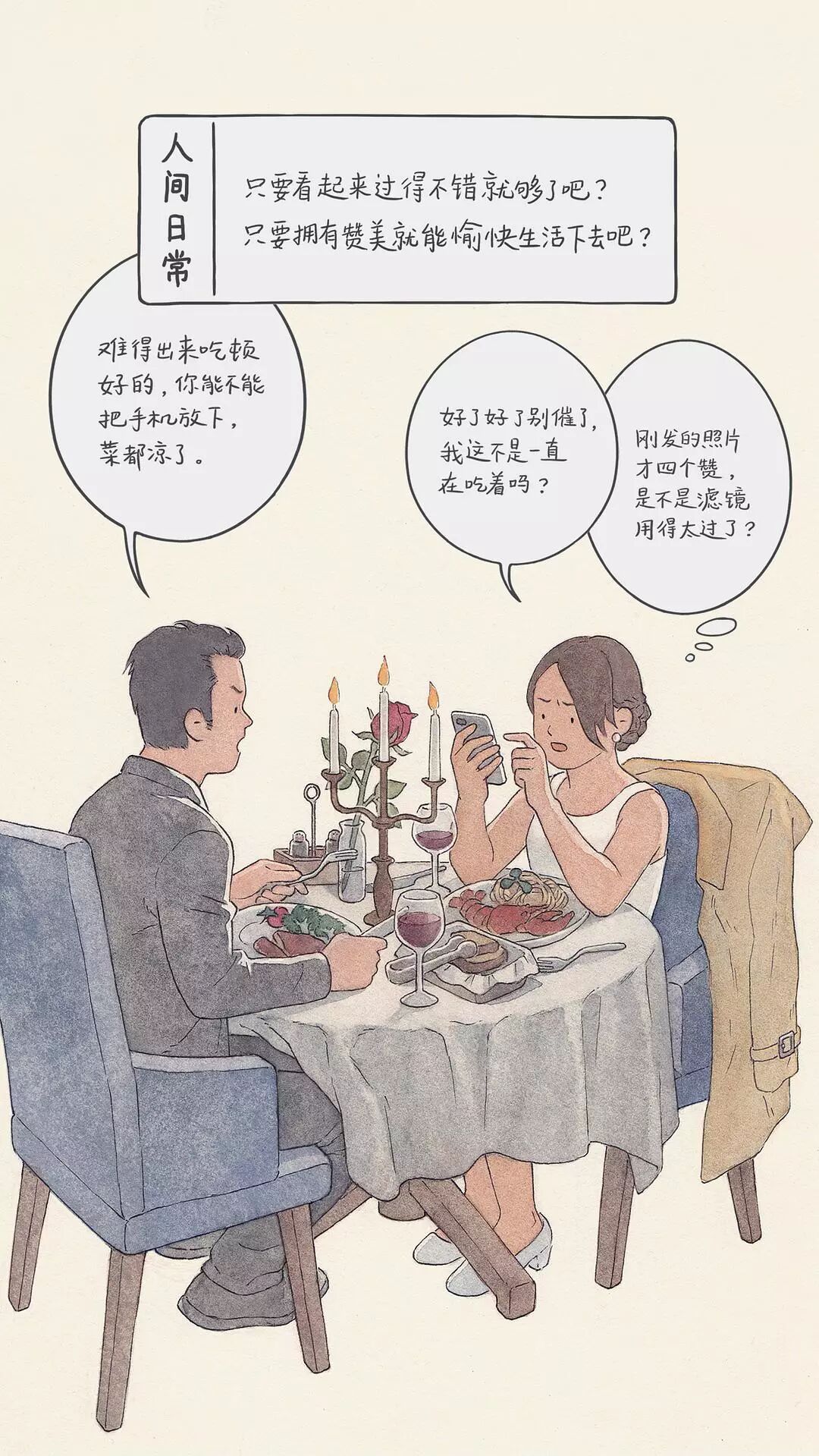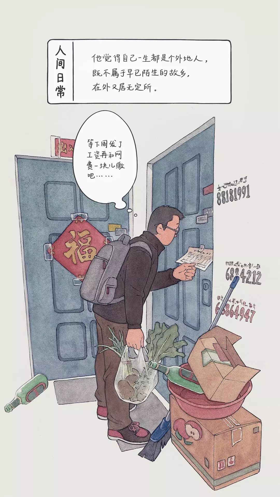 从此,这位插画师开始用画笔描绘出生活中的一幕幕,汇成豆瓣相册《人间日常》。