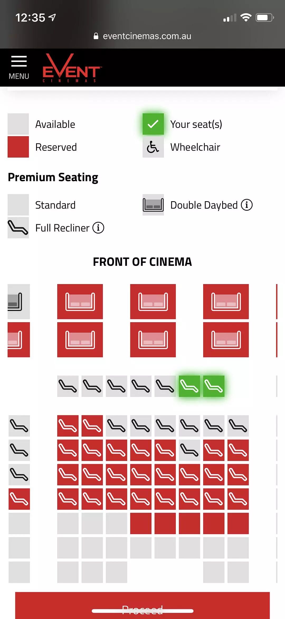 附近区的电影院我翻了个遍终于看到有个两个不那么靠前的座儿,靠背还可以放下的那种,耶。