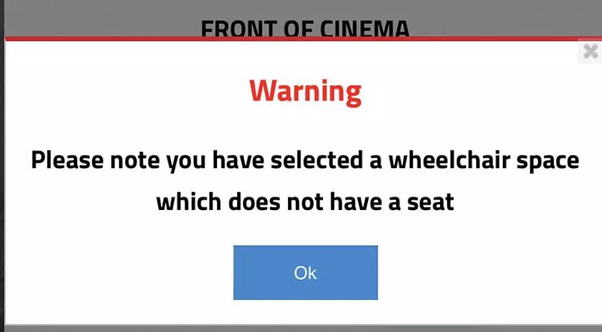 “请注意你选择了没有座位的轮椅座位”