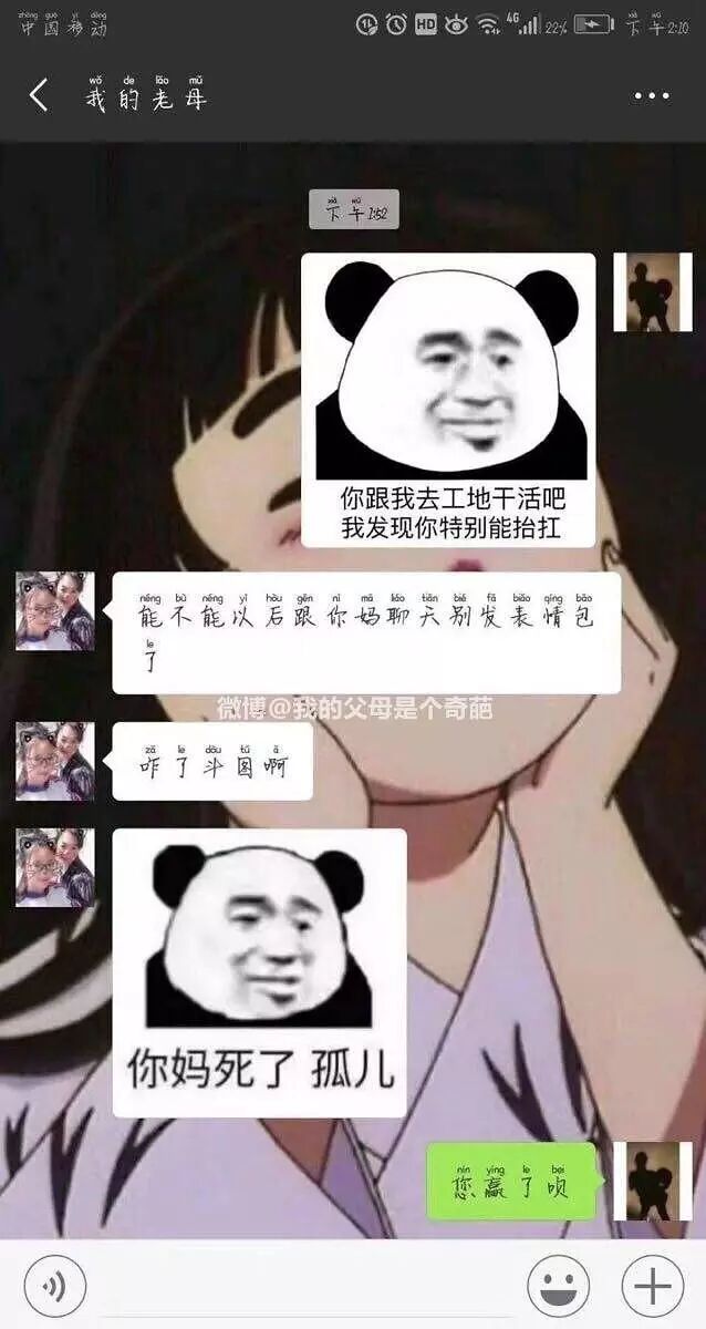 我妈微信叫牛魔王 让我爸注册微信叫铁扇公主 所以我爸到现在也不用微信哈哈哈
