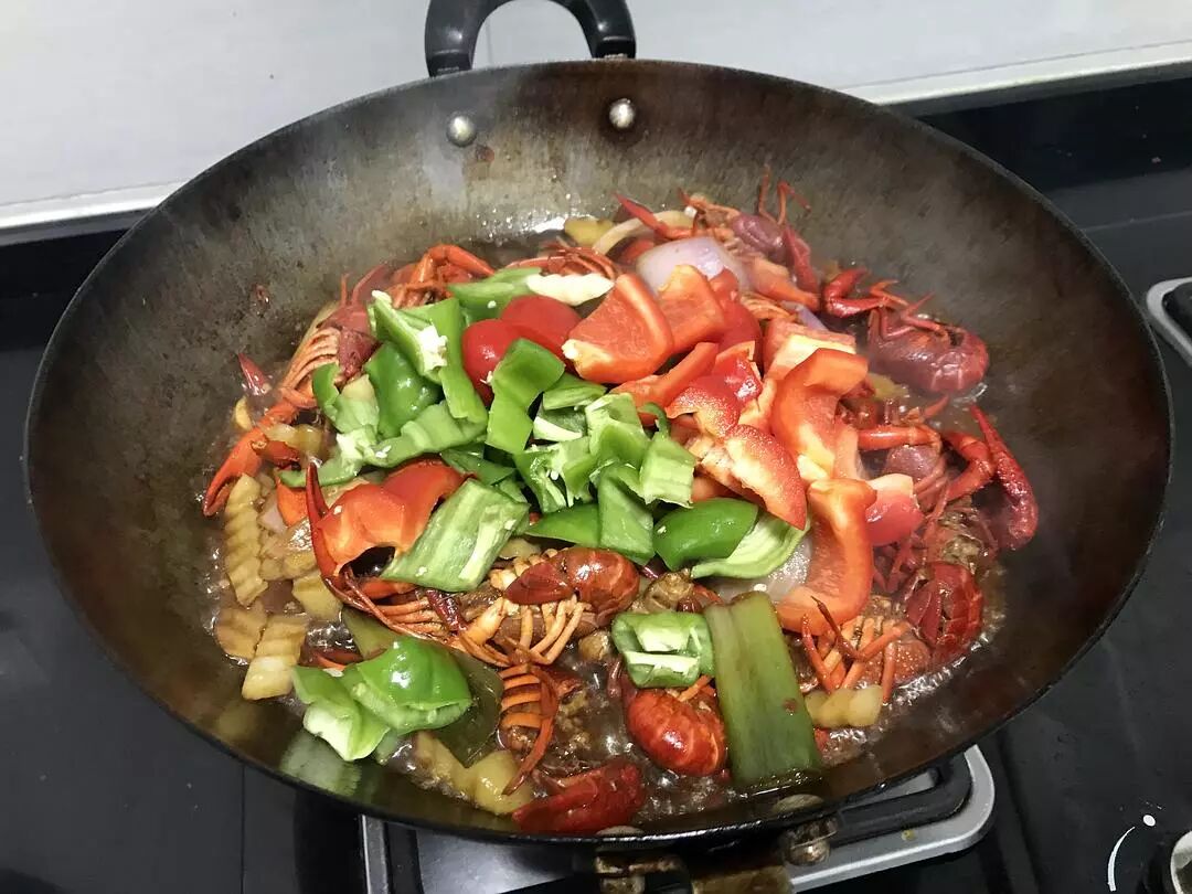 处理好的小龙虾放进去翻炒