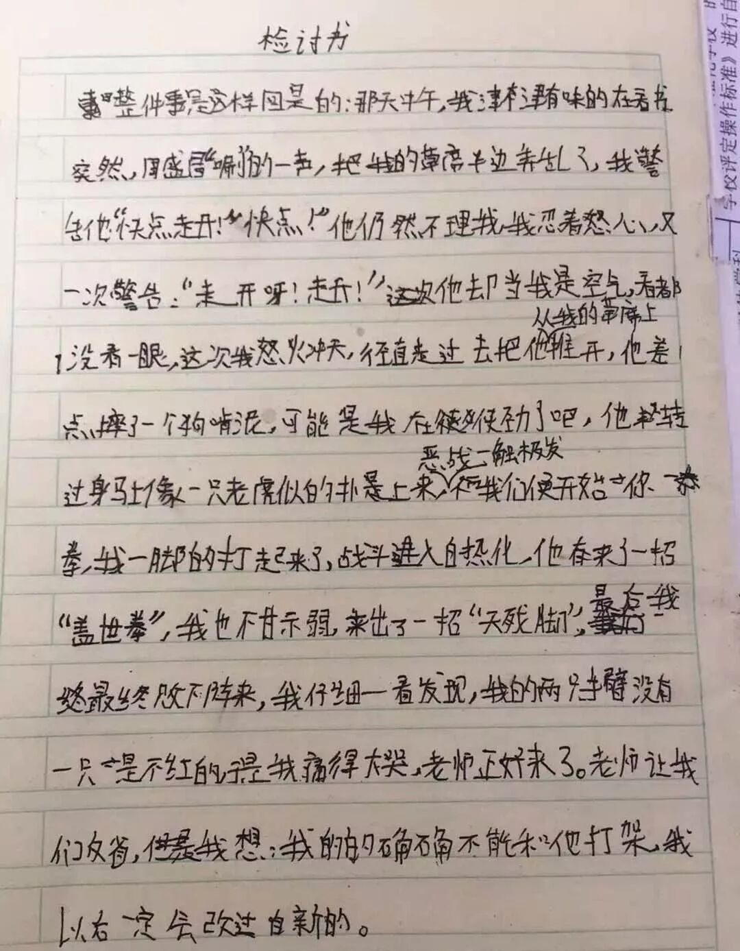 学霸和学渣打完架各自的检讨书