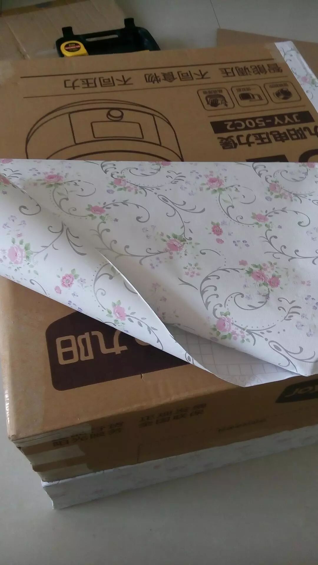 特别喜欢收集包装纸,搬家后试了下能不能拿来贴柜子,陆陆续续快贴满了~
