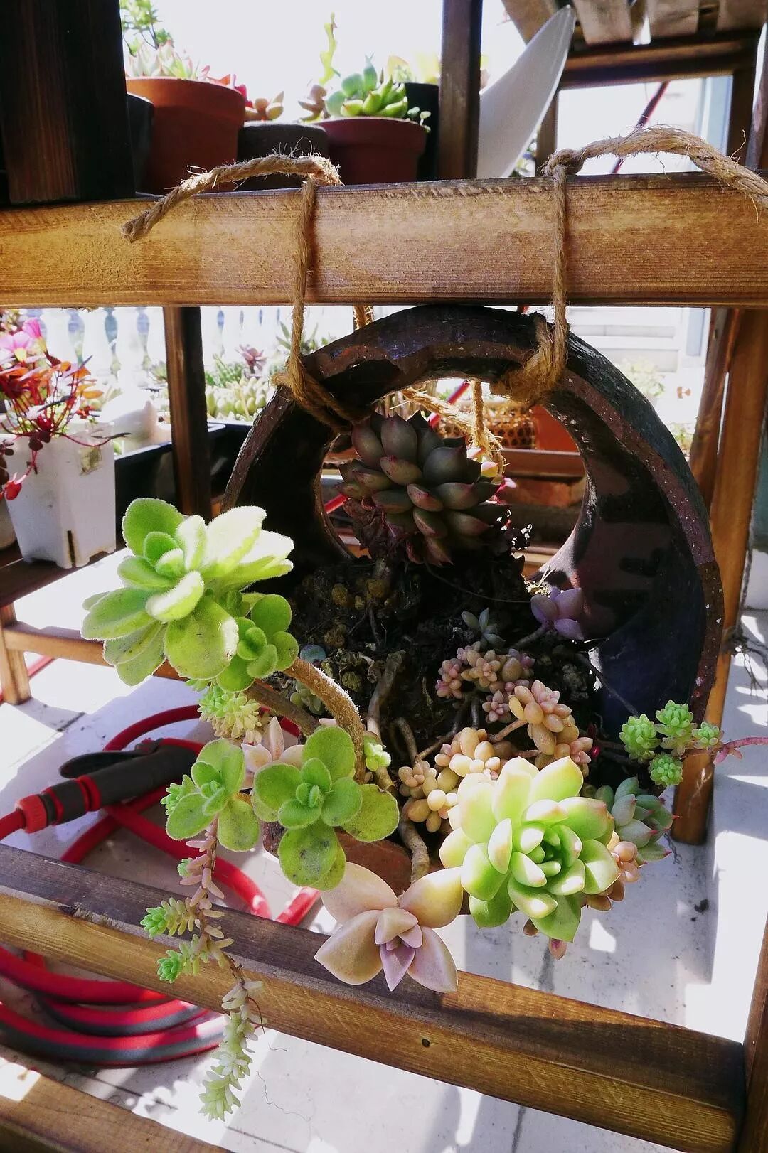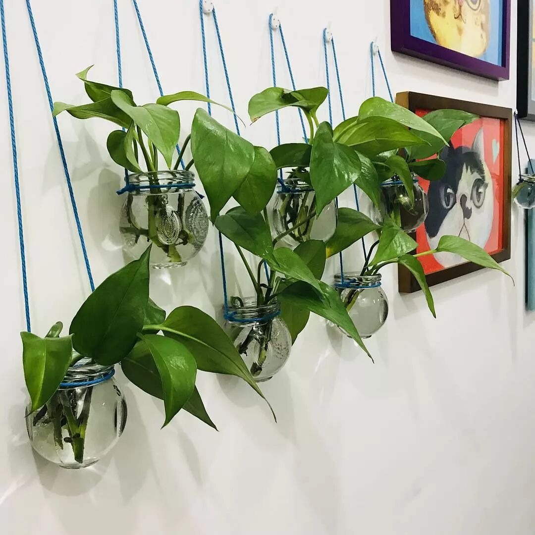 不用的拔罐罐子被我挂在墙上插绿箩了