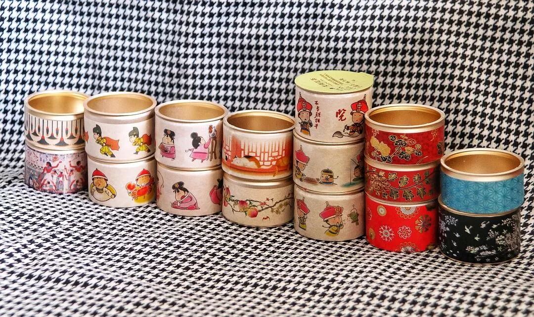 小罐茶的罐子,用故宫淘宝的胶带装饰了,用来装扣子等零碎物品