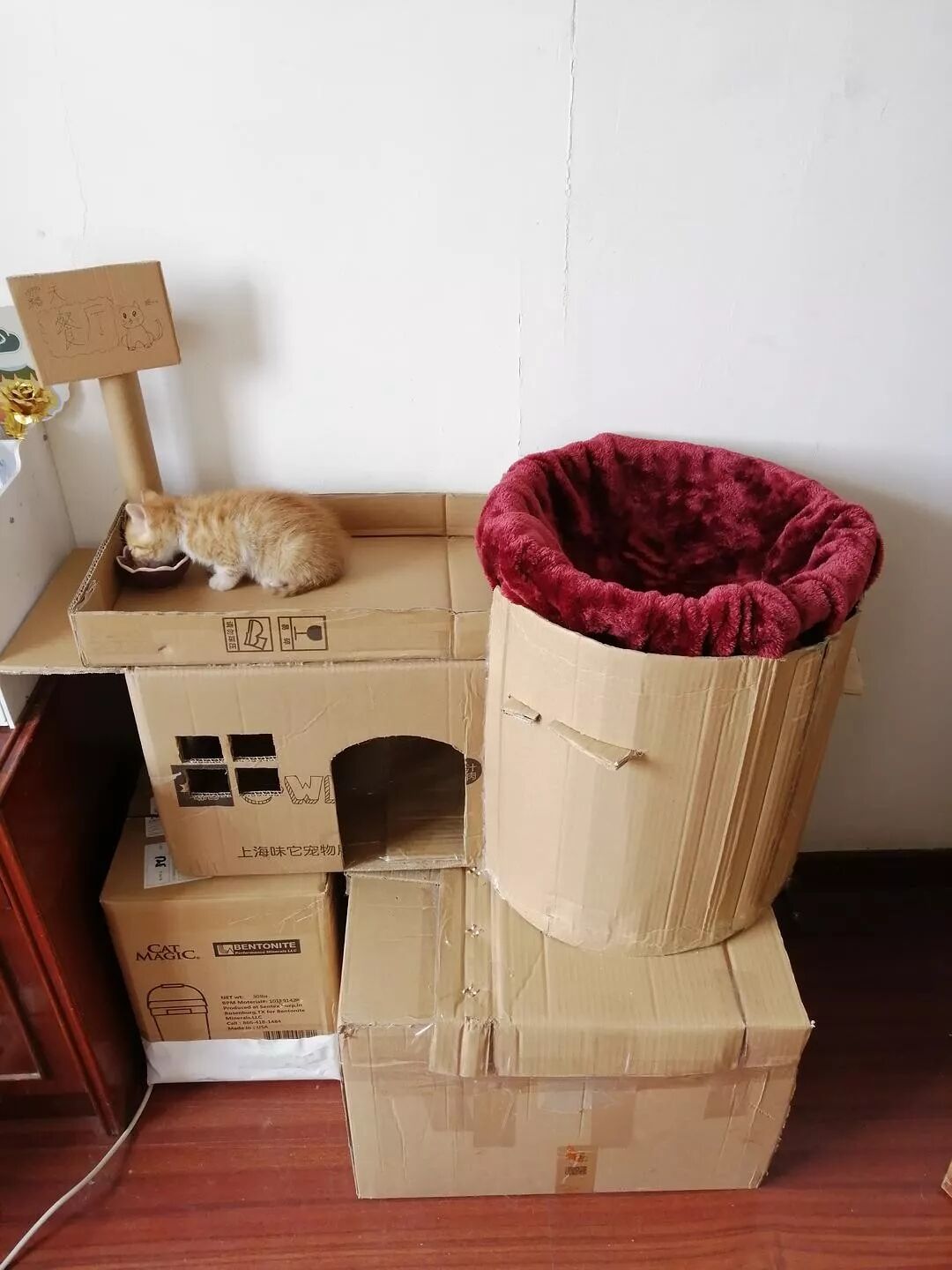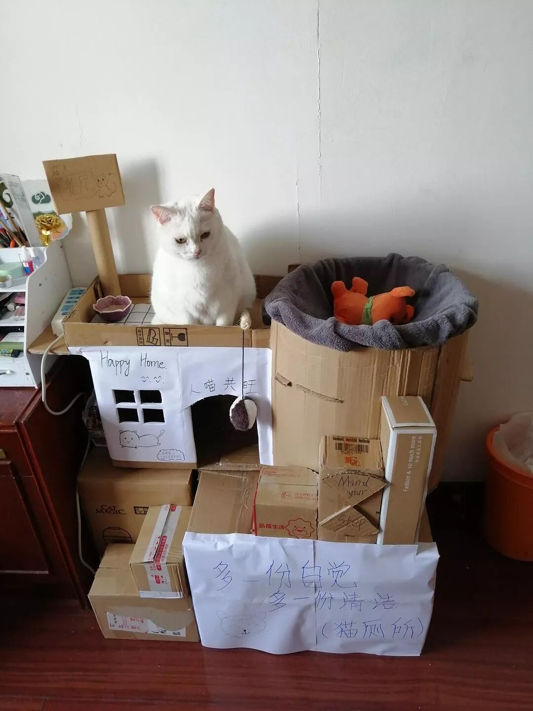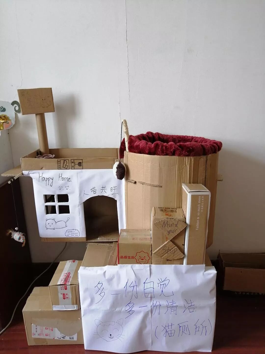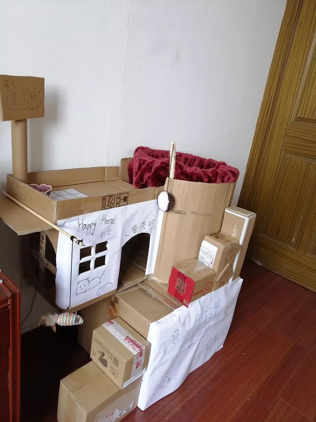 用快递盒纸箱子给崽子们做了个猫别墅,哈哈哈(ಡωಡ)hiahiahia