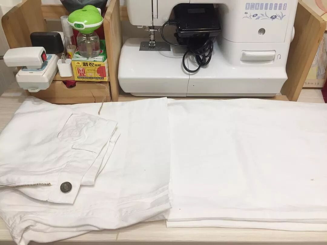 上半截做好包边,我就有了一条白色高腰短裤