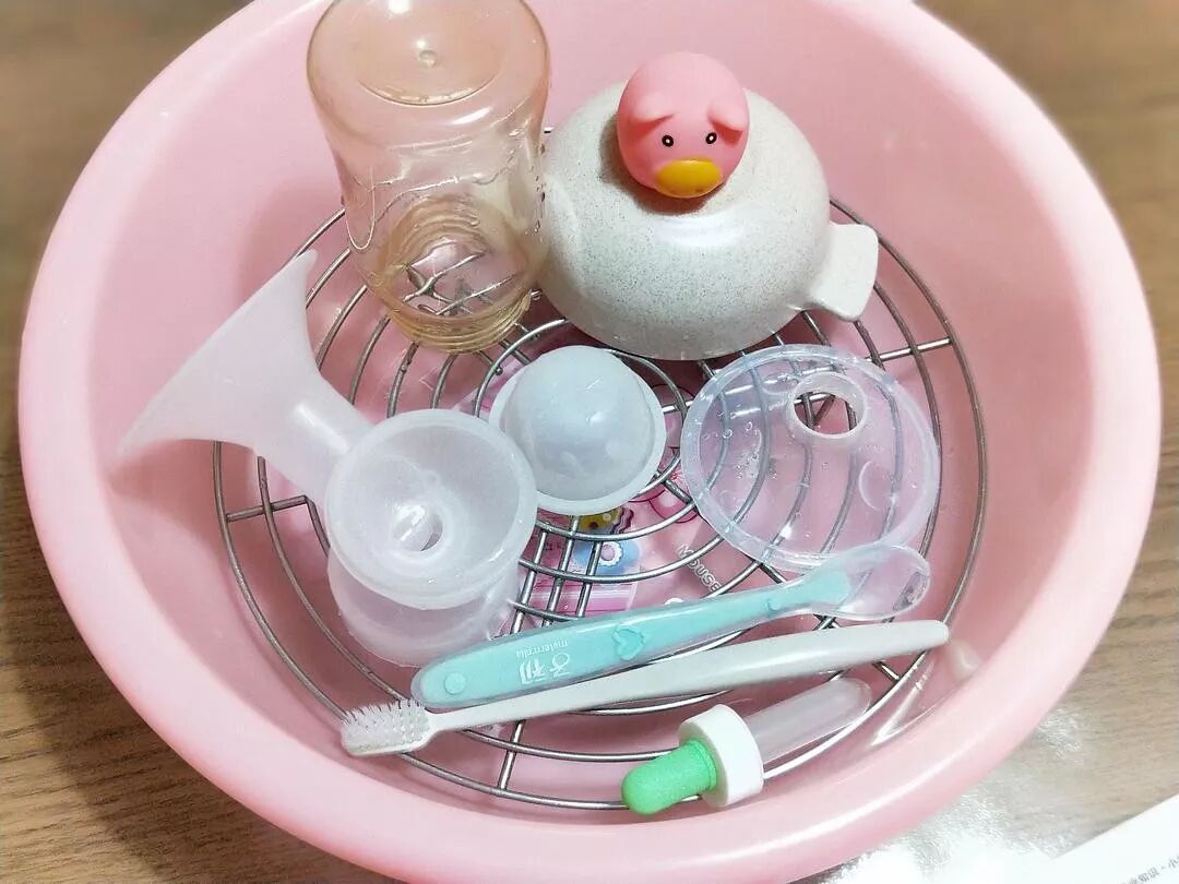 买锅送的蒸菜架,放在脸盆里,正好用来晾奶瓶。
