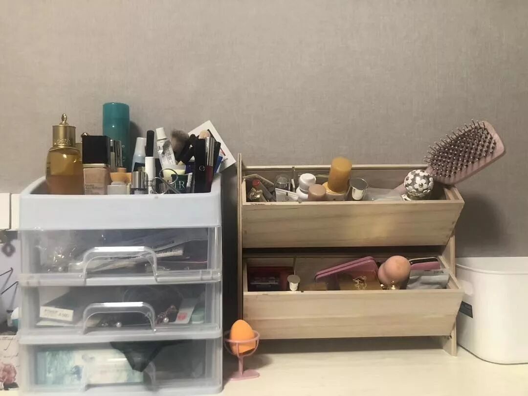 闲置的红酒盒做的化妆品收纳架子