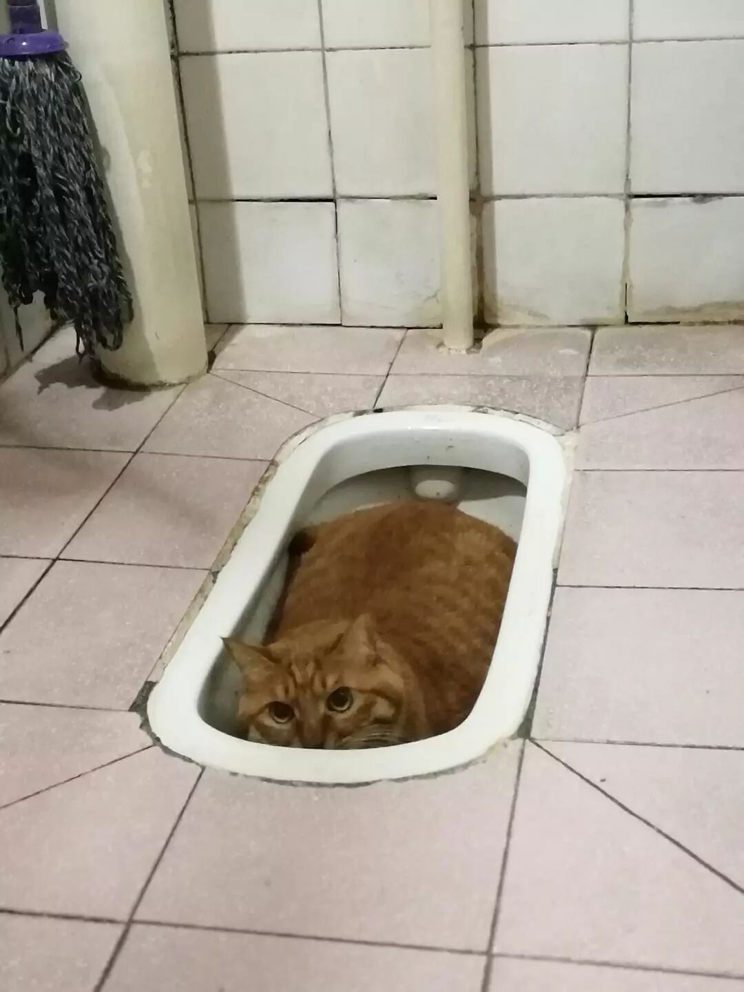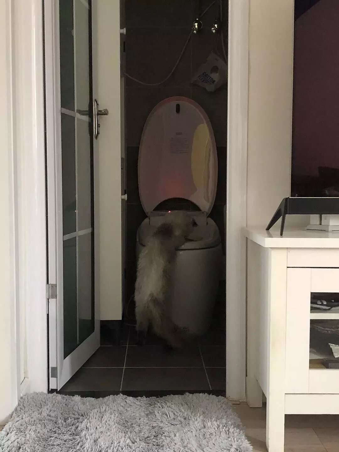 铲屎官上完厕所也要观赏一番