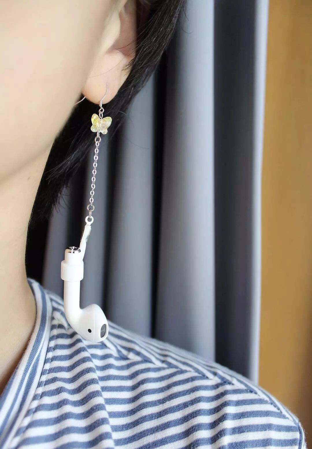 丢了一只airpods后有了阴影,这次买了新的,每次上下地铁都是捂着耳朵的。防丢绳带着又觉得太low,决定做个耳环掉的时候可以挂耳朵上。