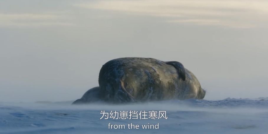 海豹妈妈只能用自己的身体来遮挡暴风雪,勉强为孩子争取存活的可能性。