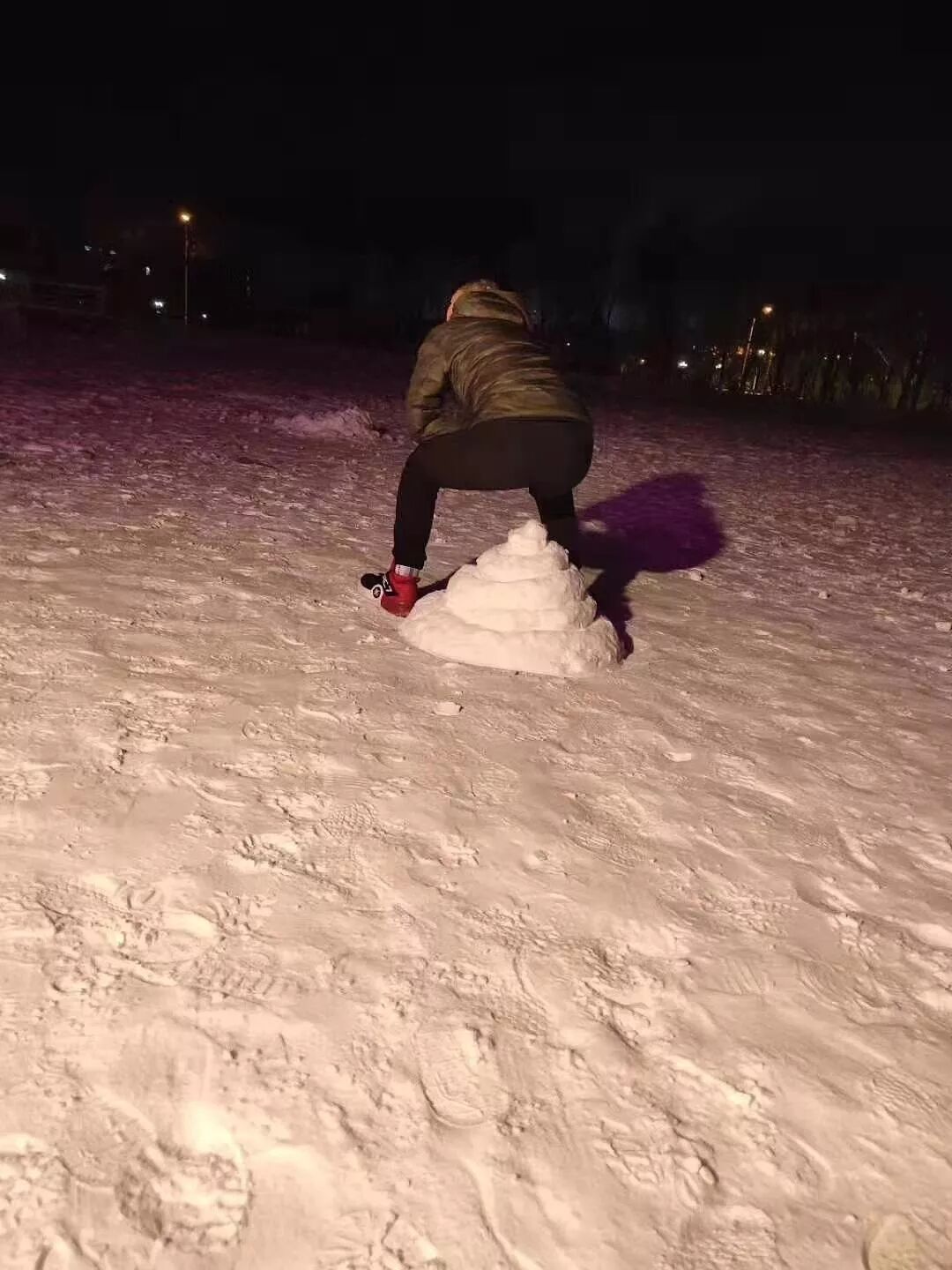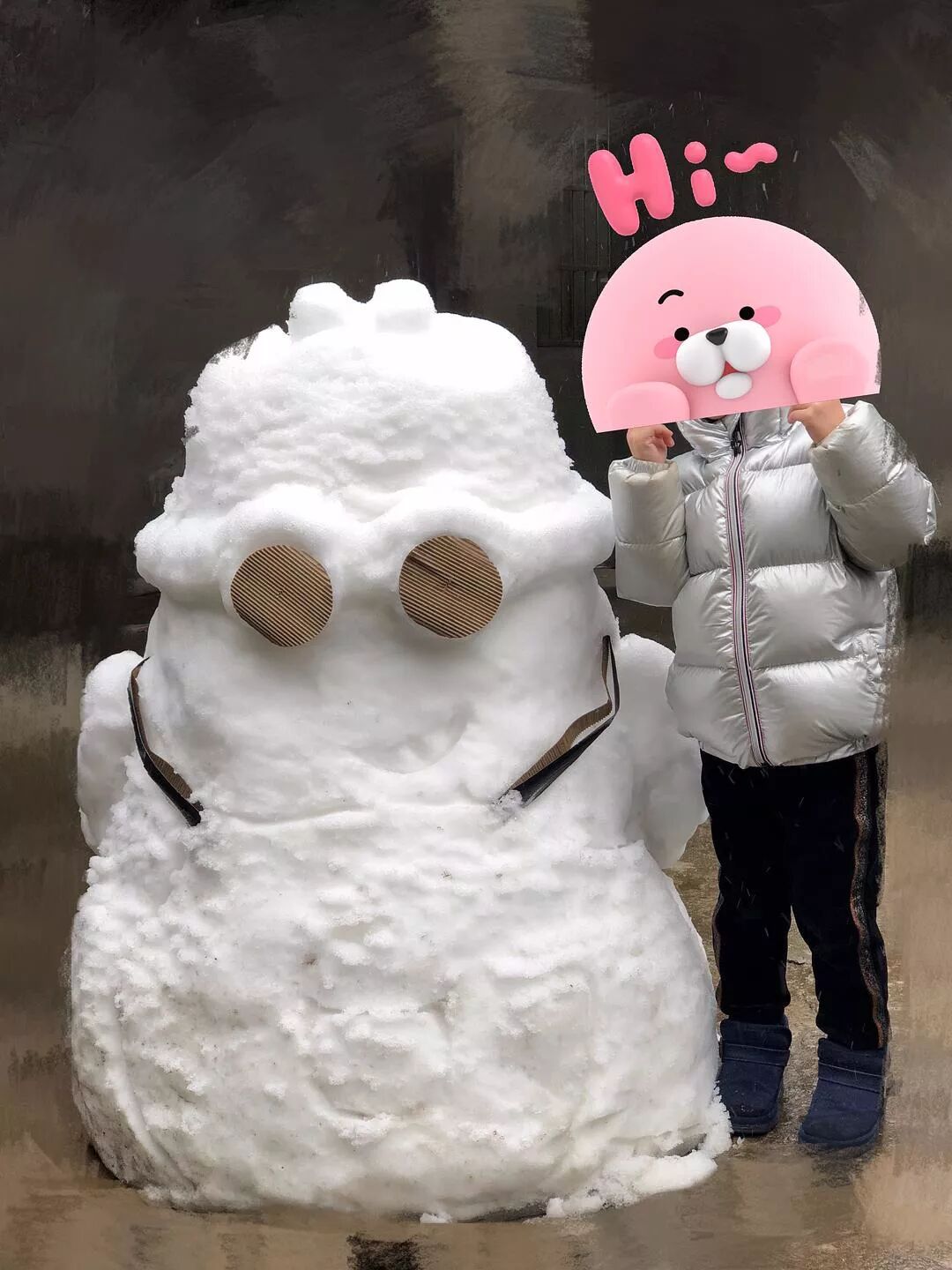 本身堆了个可可爱爱的雪娃娃,就跑去公园玩啦