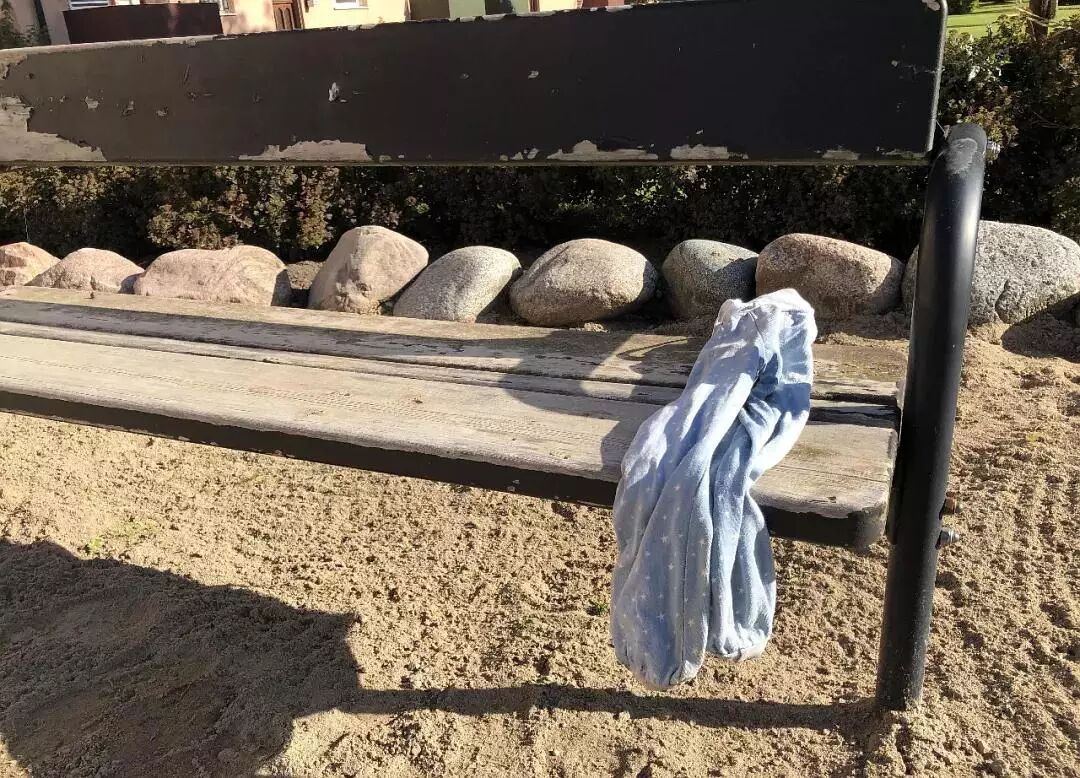 我家楼下的长椅上,有一条儿童小裤。