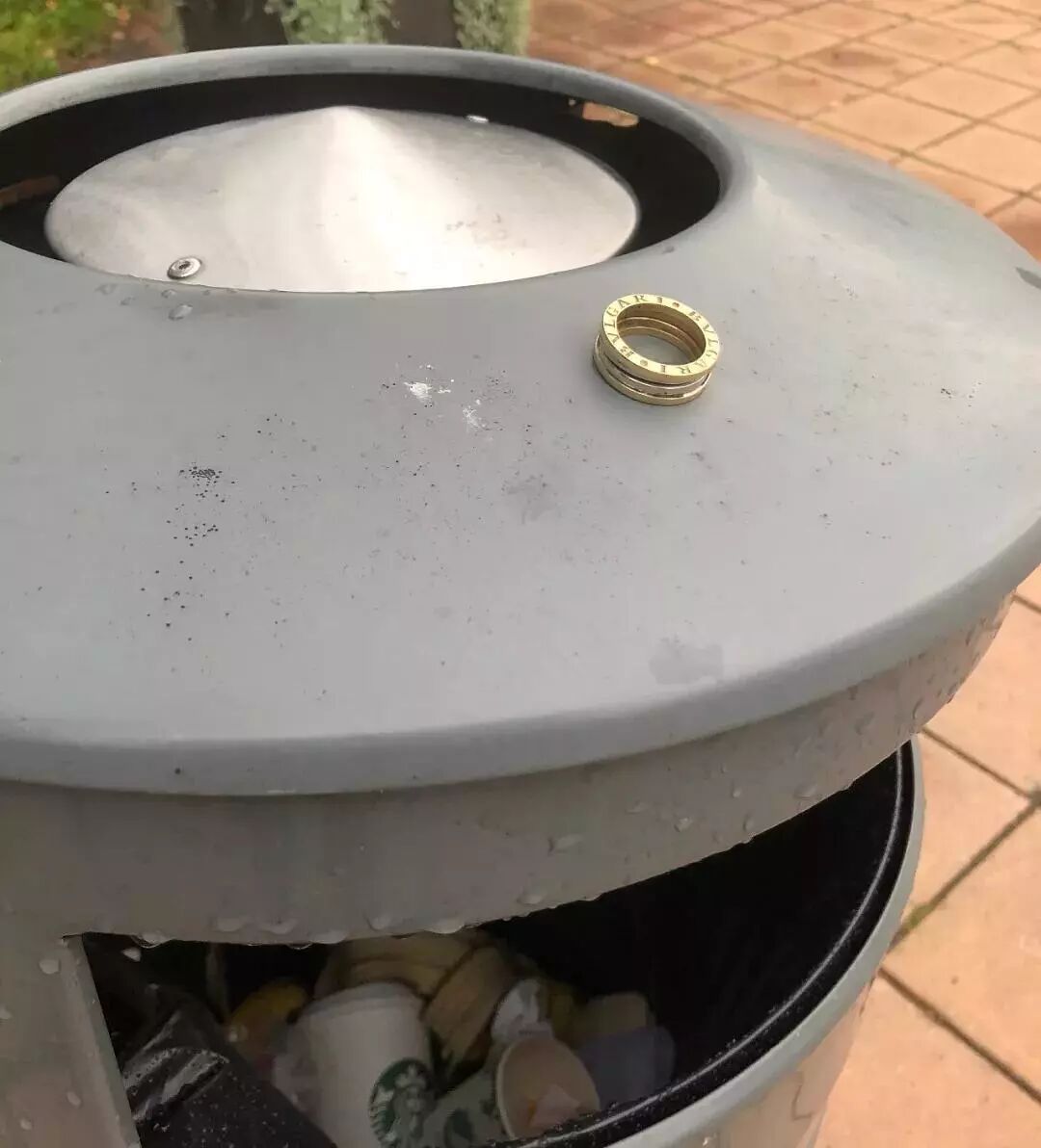 好歹也是宝格丽,就算款式老了些,可这样随意地丢在垃圾桶上,也实在有些掉面子。