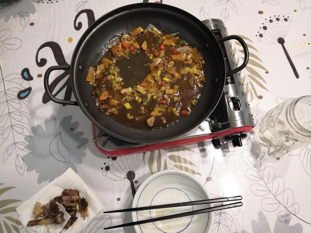 虽然放了醋,但早在烹饪过程中挥发掉了,成品为咸辣口,微甜,带有微微醋香。里面的葱花蒜片辣椒都超级好吃!一人一口气两根鸡大腿两碗米饭一瓶快乐水直接扫光。