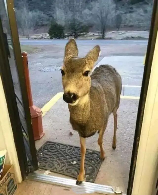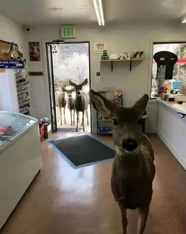 是新闻来的:美国科罗拉多,一只鹿进了一家商店,店主给了它一把花生