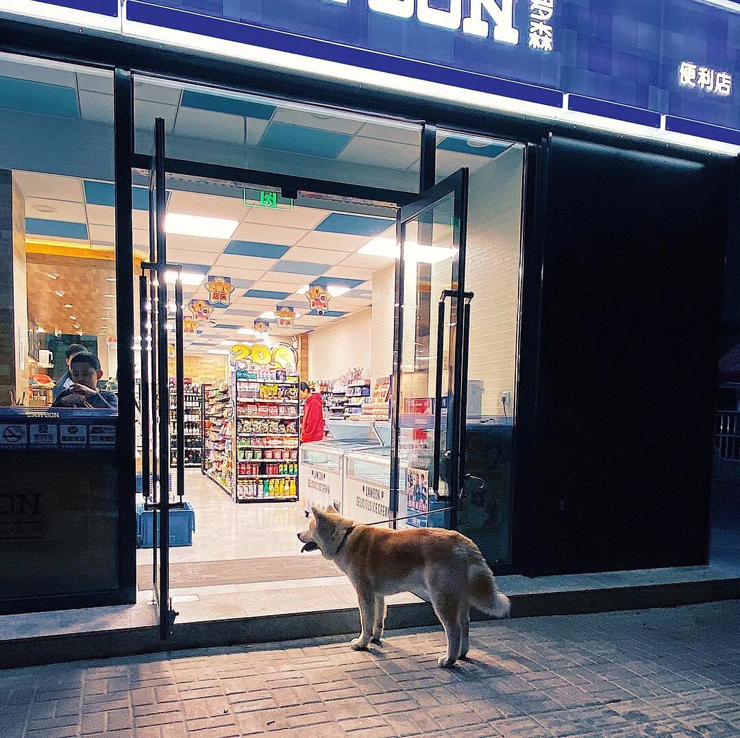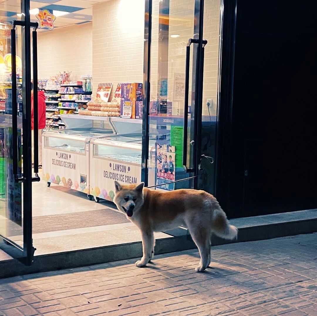 深夜便利店 拴在门口的秋田在等小主人吃完关东煮🍢一起回家 来自豆瓣话题#什么是电影感#