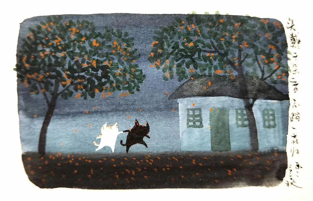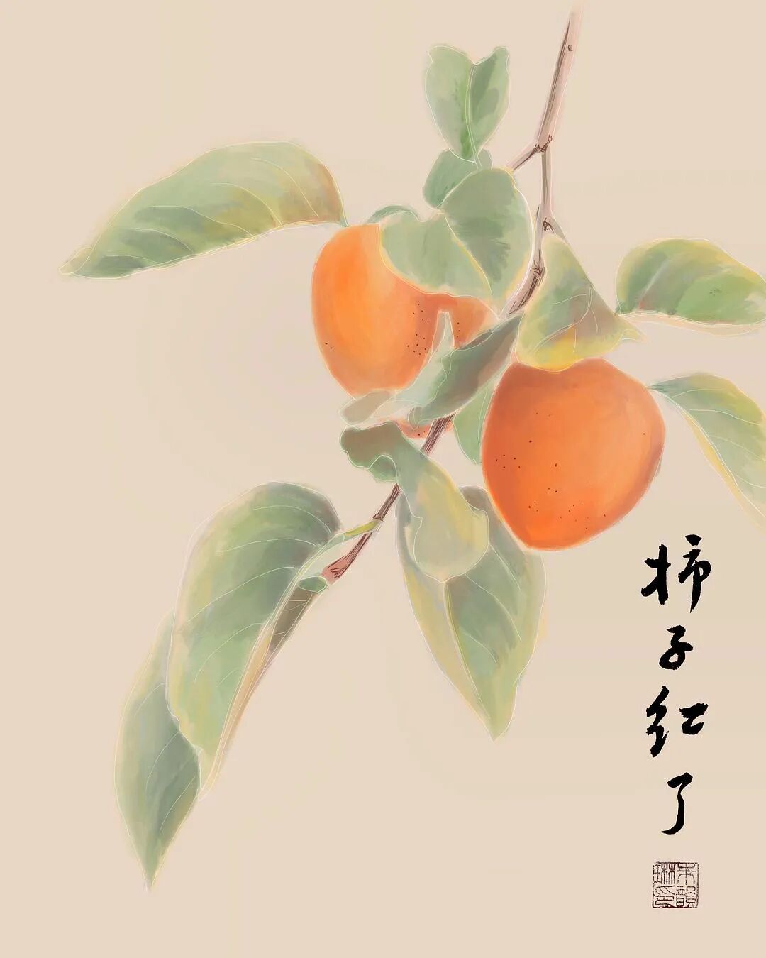 画了两个柿子。