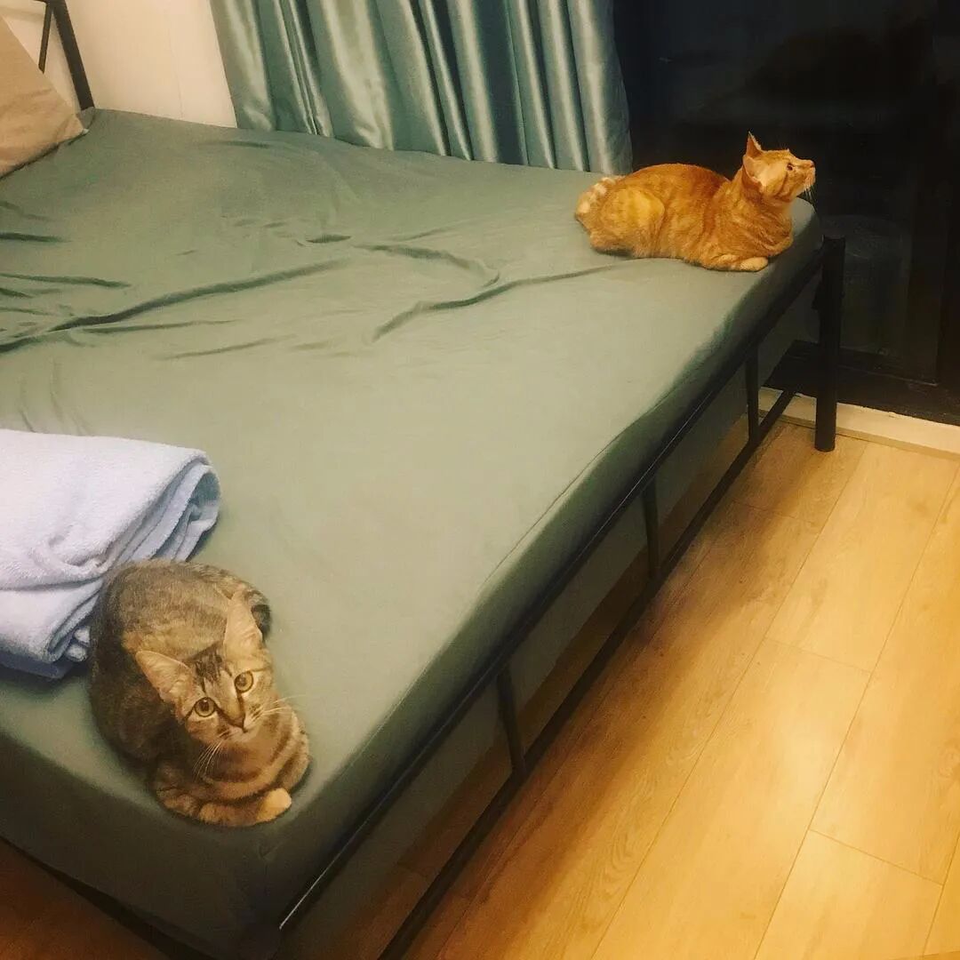 两只神兽,打完架就占据床的两头,谁也不想搭理谁。 来自豆瓣话题#你家猫咪的奇怪嗜好#