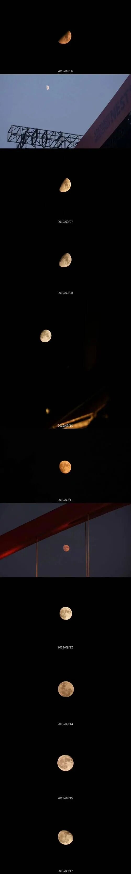 手机的话,市面上的有长焦镜头的手机都比较容易拍,就是也一样要注意不要过亮,这样能看到月亮的细节。手也同样的不能抖,手机的快门反应会比相机更慢。如果拉到很近,比如四五十倍的时候,那一般就没有周边环境啦。手机有的会显示智能模式,它会把参数自动调到很暗可以看清月亮,但是我觉得参数会失真,经常看到的很暖的月亮会被拍的偏冷,变成银白色。(如果实在没办法就后期调一下)